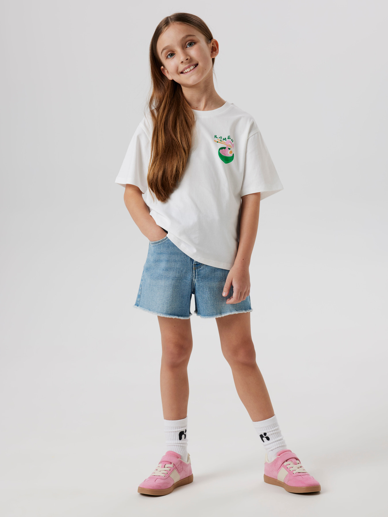 Disse denimshorts er fremstillet i et slidstærkt materiale med et klassisk udtryk. De har høj talje, justerbar linning og lukkes med knap og lynlås. Designet fuldendes med en diskret badge og en komfortabel Regular Fit.