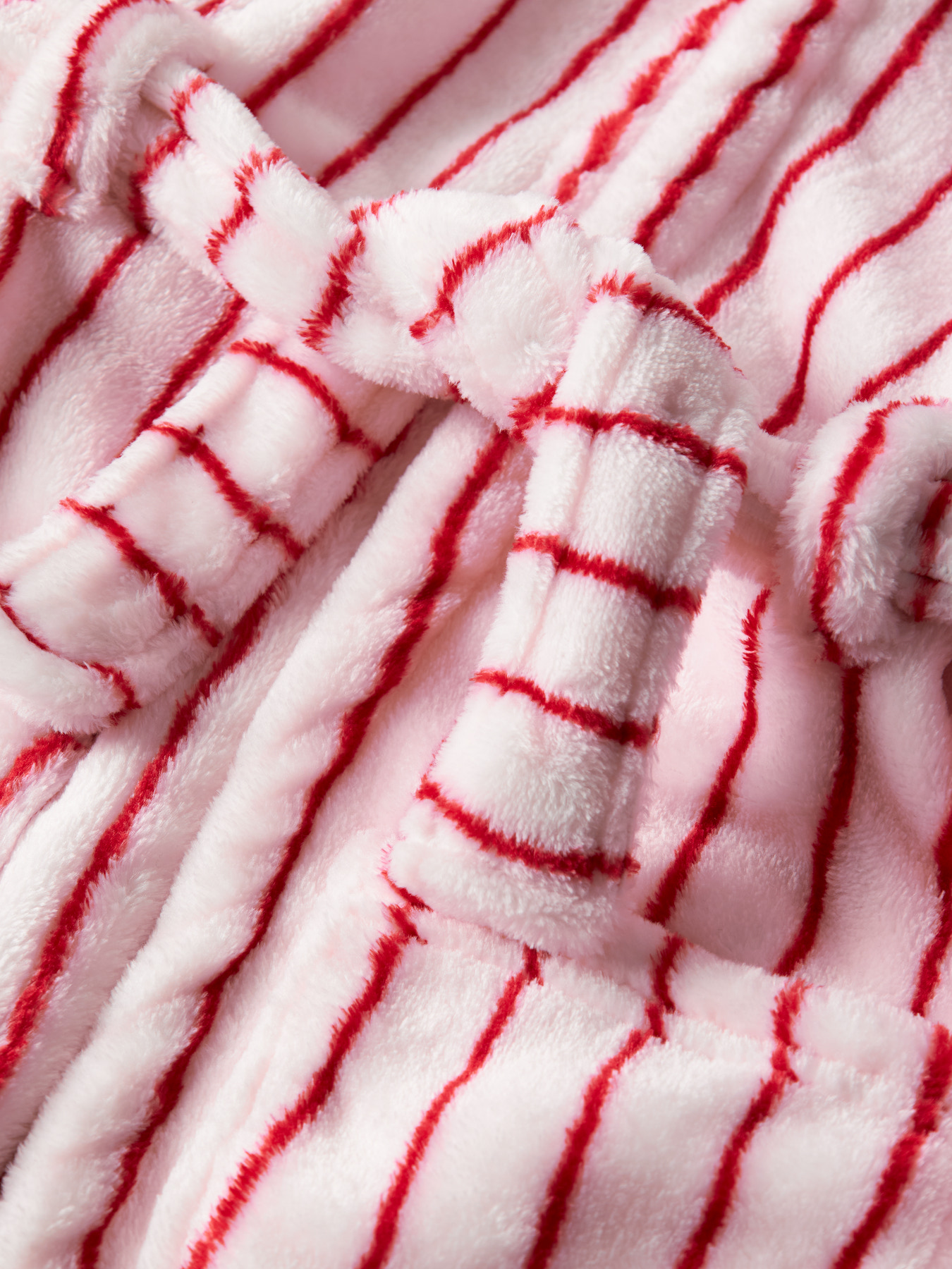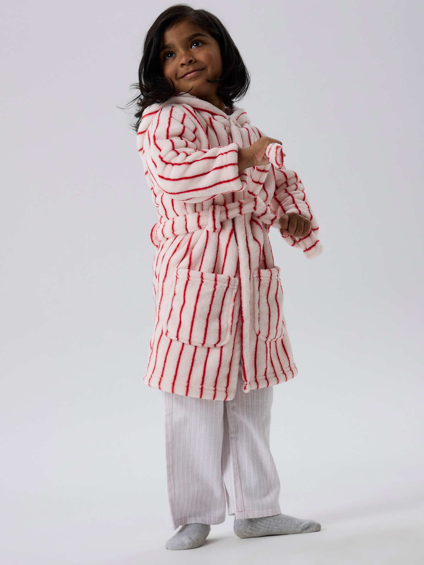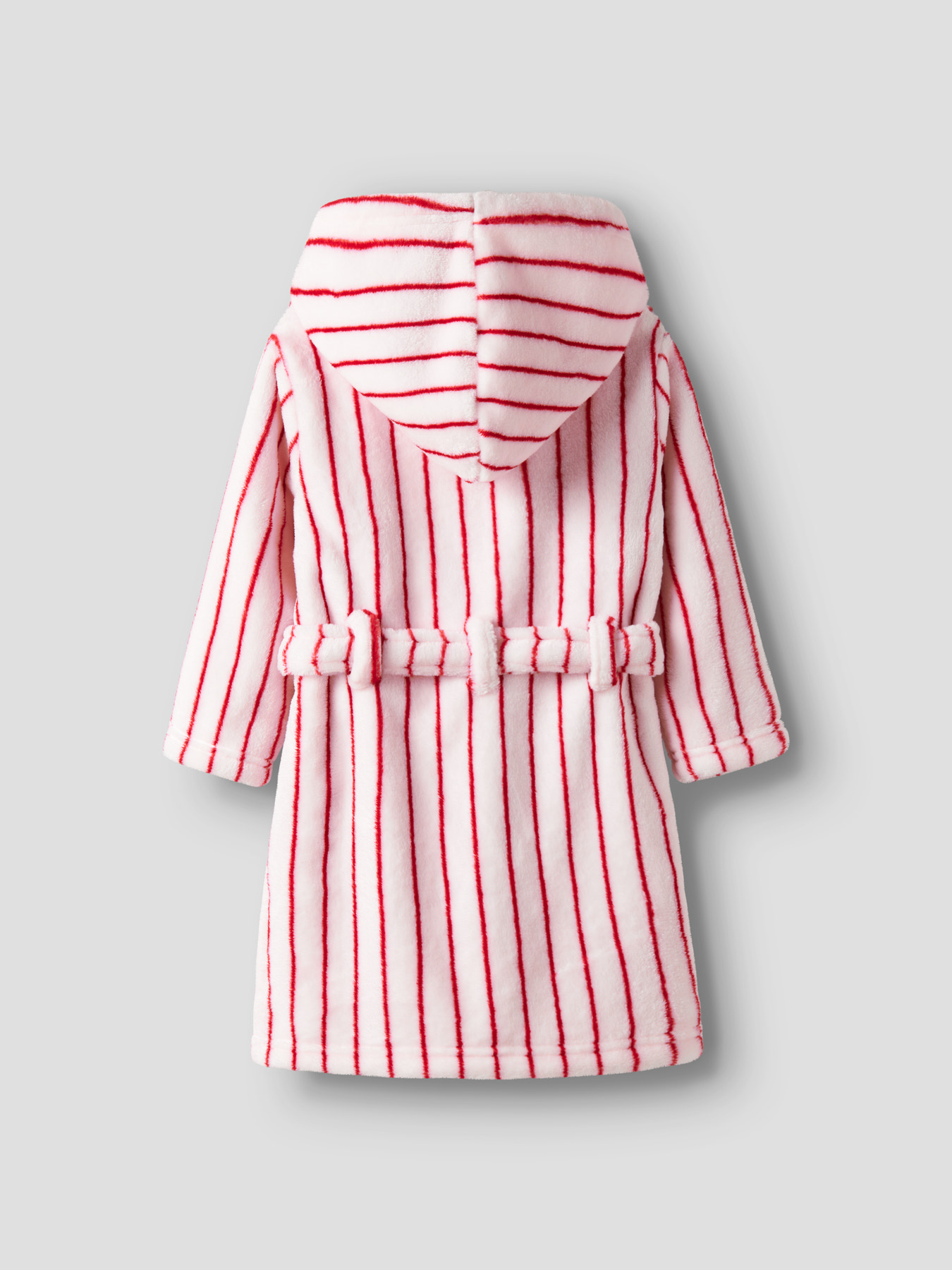 Mega lækker morgenkåbe fra Name it. Den er i flot lys farve med tynde striber. Den er med hætte, bindebånd i livet og trykknap øverst. Den er i mega blød kvalitet og med lommer på siderne.