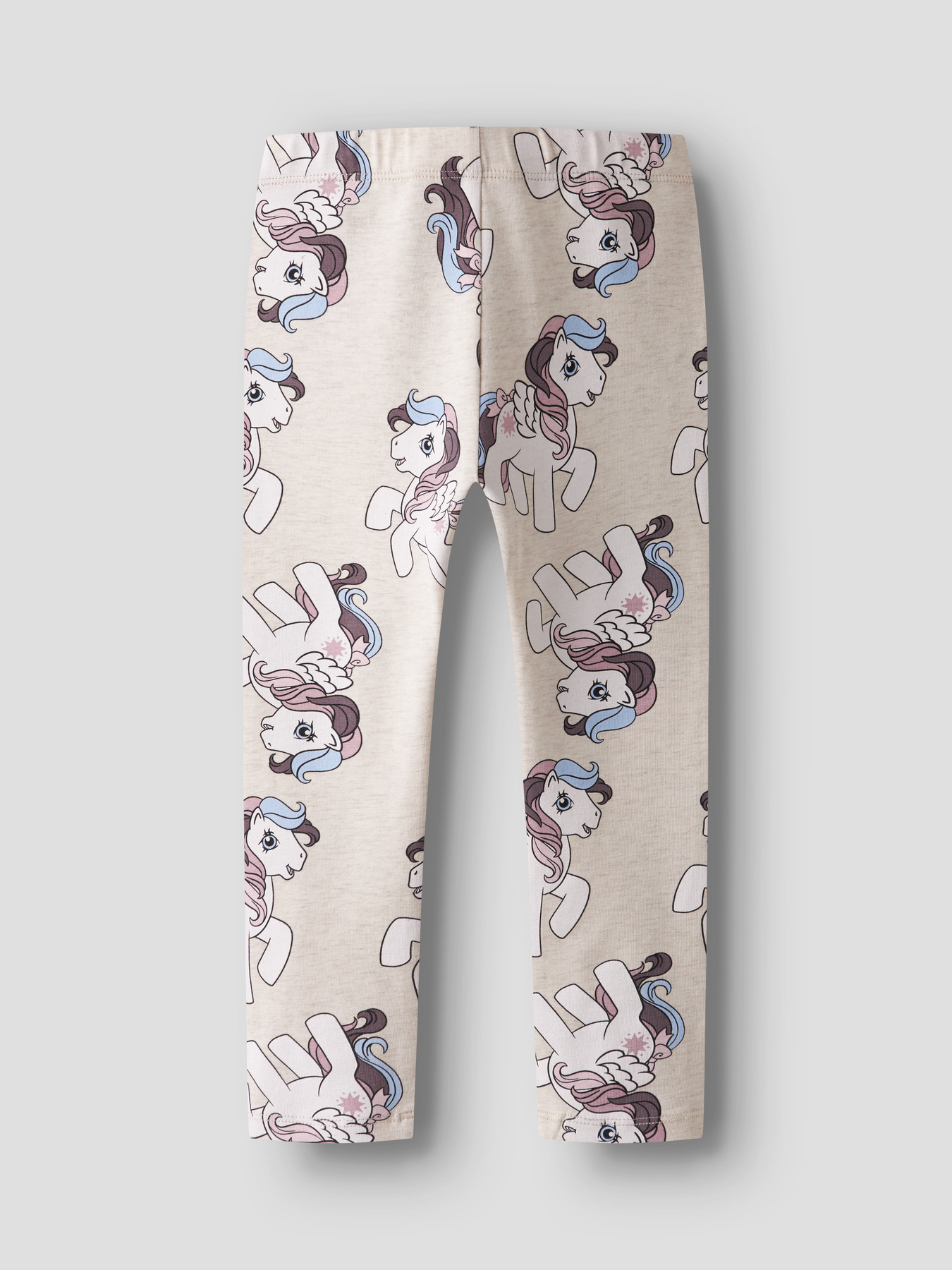 Super søde leggings fra Name it med all over print af hestene fra My Little Pony. De er i lækker elastisk og blød kvalitet, med elastikkant i livet.
