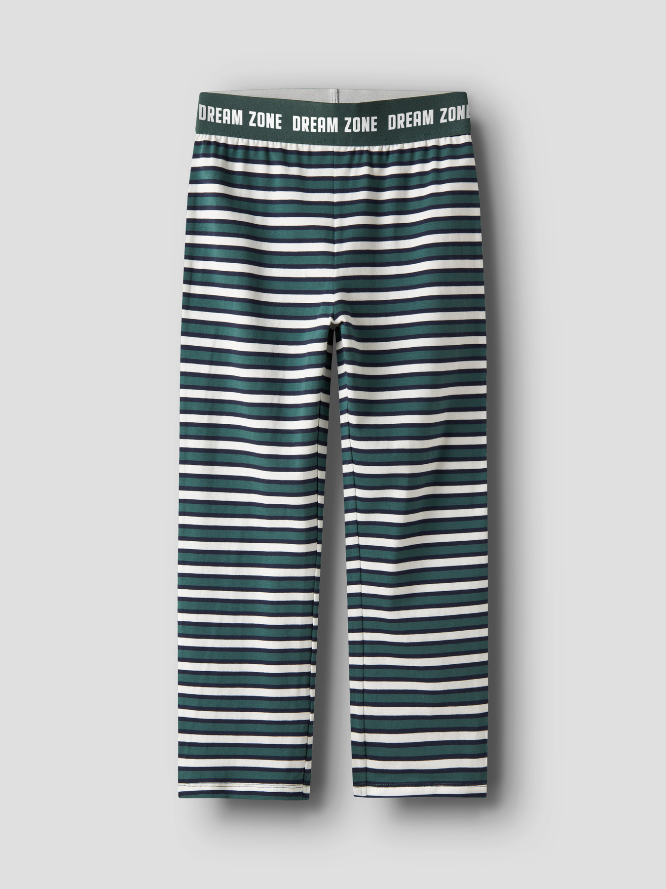 Mega lækkert natsæt fra Name it med bukser og bluse. Bukserne er stribede og med elastikkant med tekst tryk i livet. Blusen er med tryk både foran og langs ærmet.