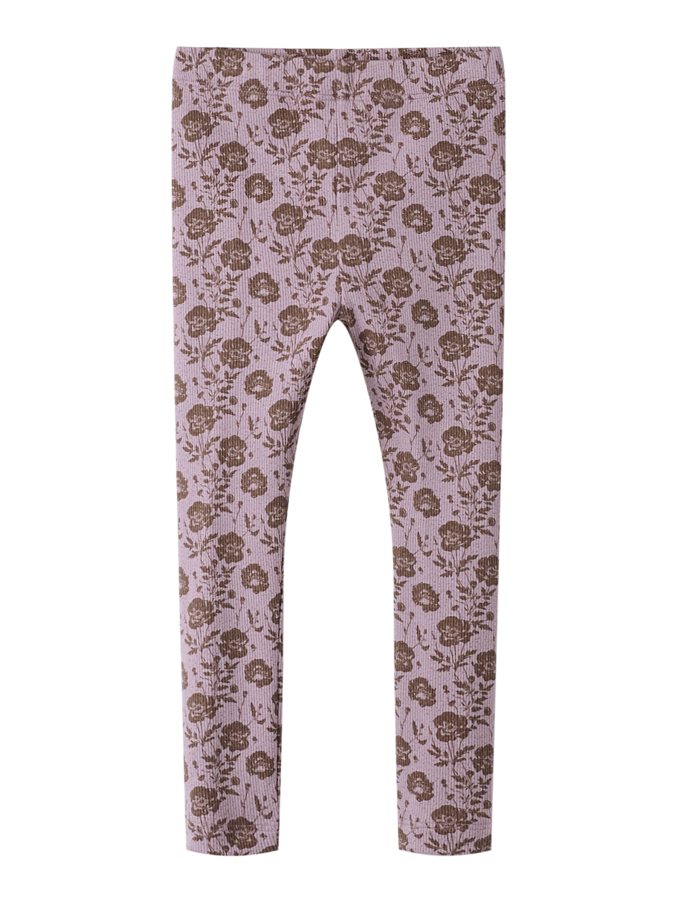 Super flotte leggings fra Name it i blød rib kvalitet. De er i de flotteste farver med smukt blomster print.