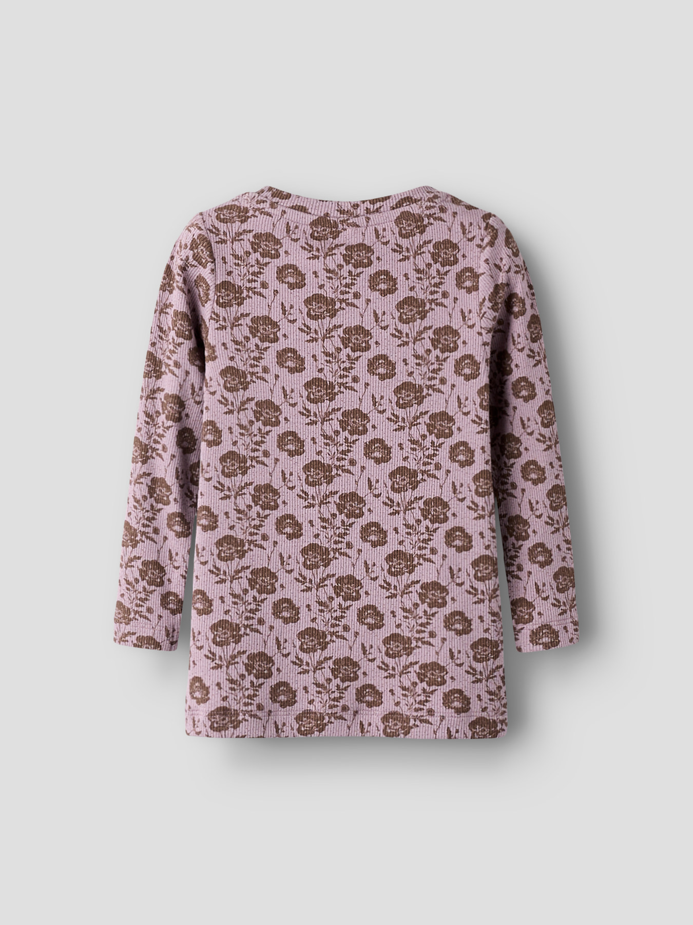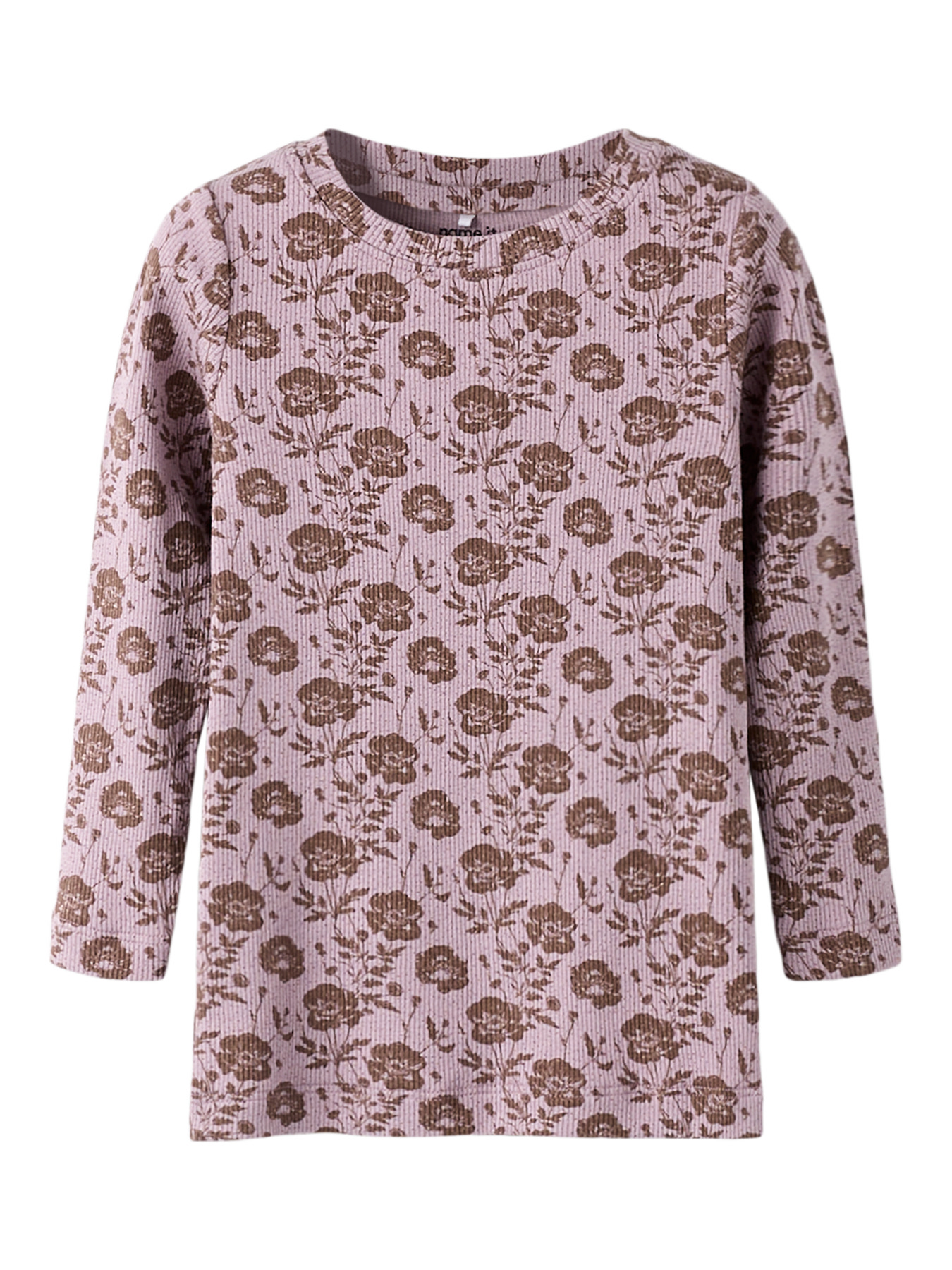 Mega smuk langærmet rib bluse fra Name it. Den er i blød kvalitet og med blomster print i den fineste farver.
