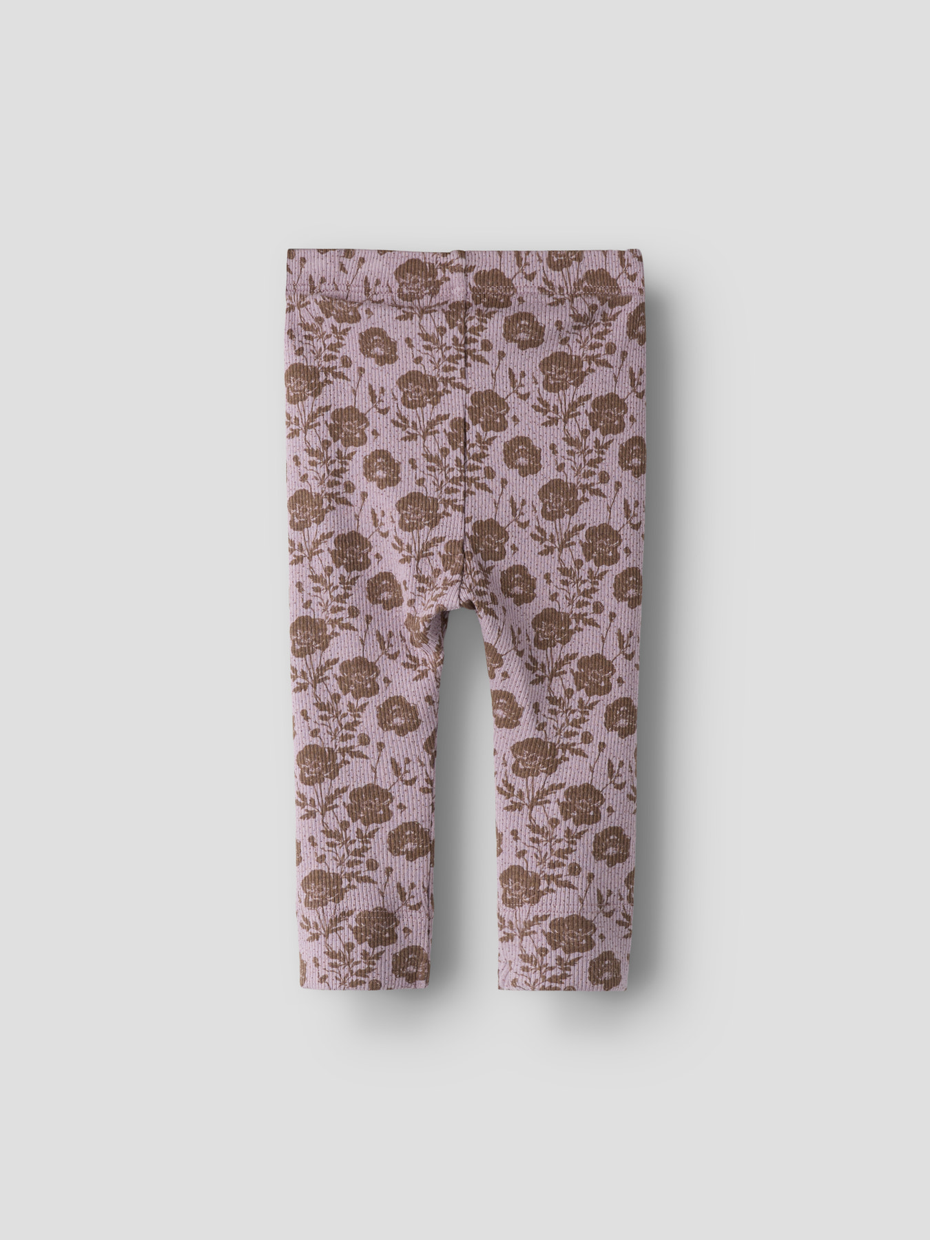 Sødeste små rib leggings fra Name it. De er i blød kvalitet og blomster print i de flotteste farver. De er med elastikkant i livet.