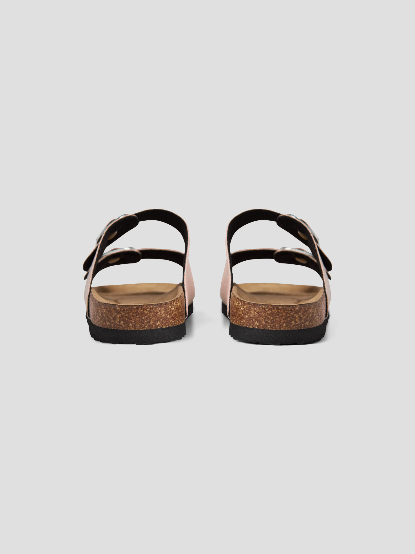 Giv dit barns outfit et glitrende touch med disse komfortable sandaler. Åben tå, spænde og korksål gør dem perfekte til både indendørs og udendørs brug.