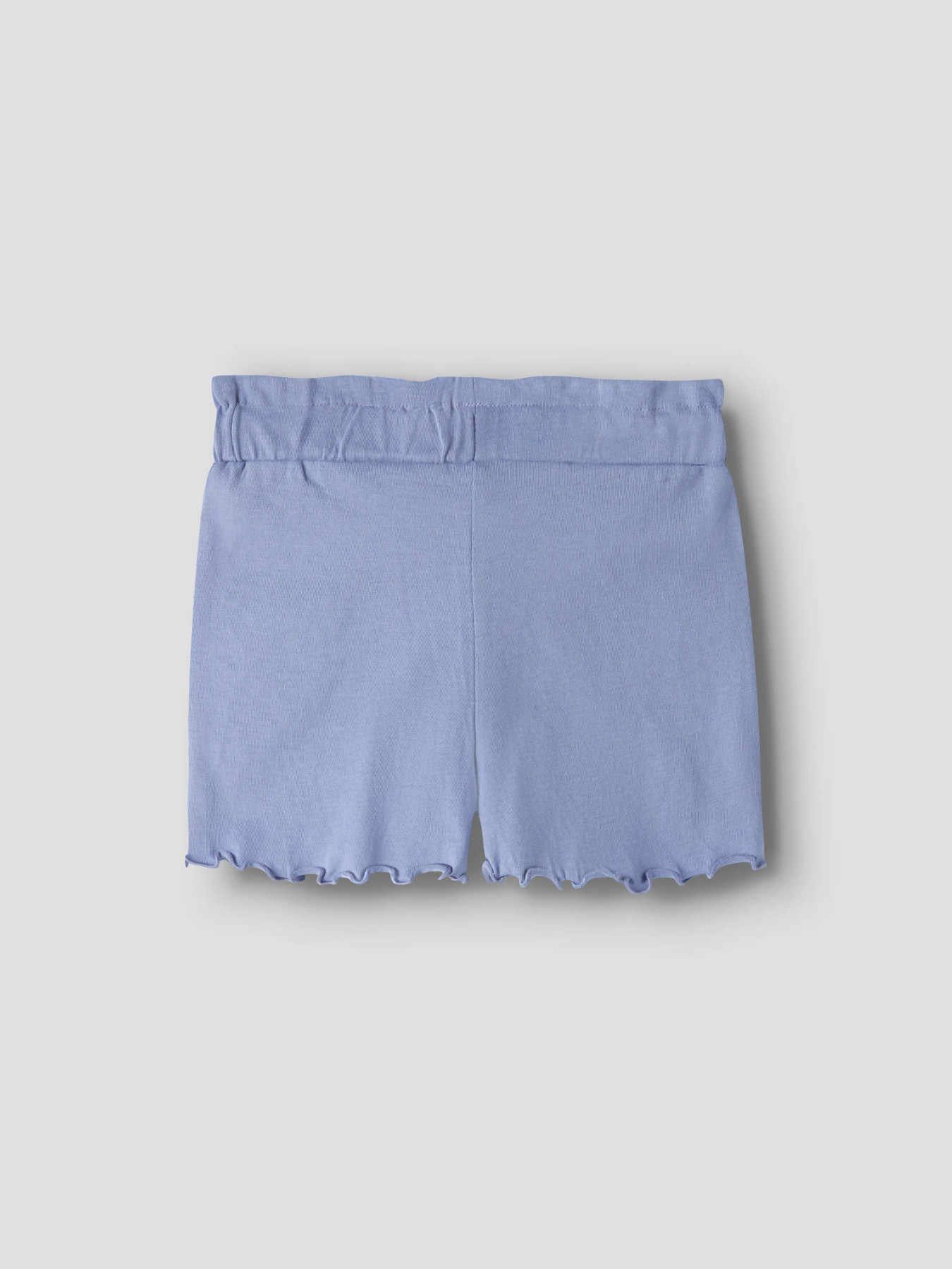 Bløde og stilfulde shorts til børn i elastisk ribstrik med vertikale striber. Med flæsekant på benene, fast bomulds-snøre og regular fit er de perfekte til sommerens leg og hverdagsoutfits.