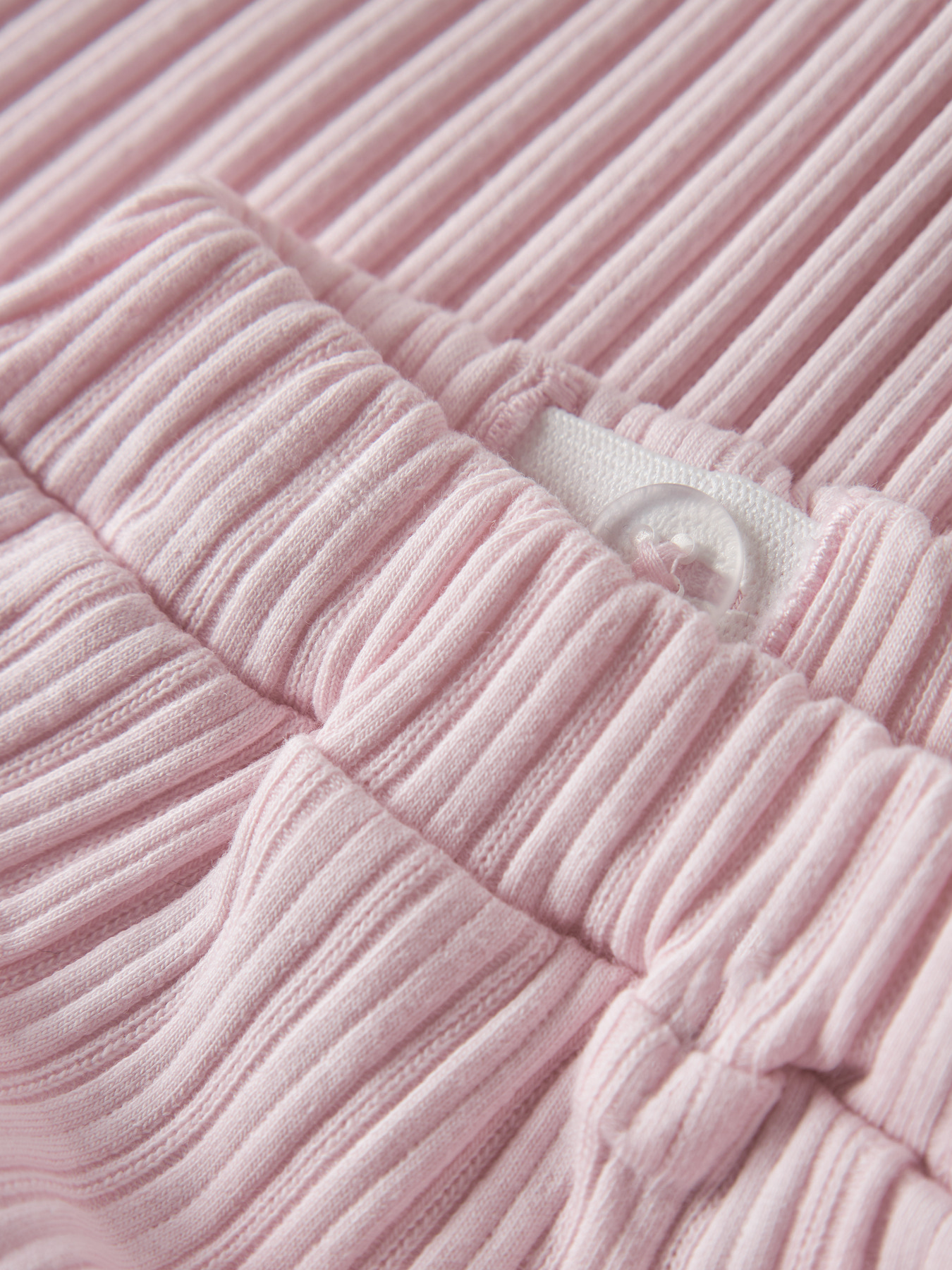 Skab det perfekte sommerlook til dit barn med et par fine shorts og dit barns yndlingstop. Det ribstrikkede materiale har et lodret stribet mønster og god elasticitet, som giver komfort og et tidløst look.