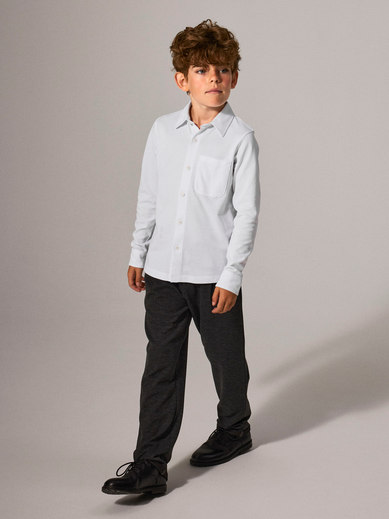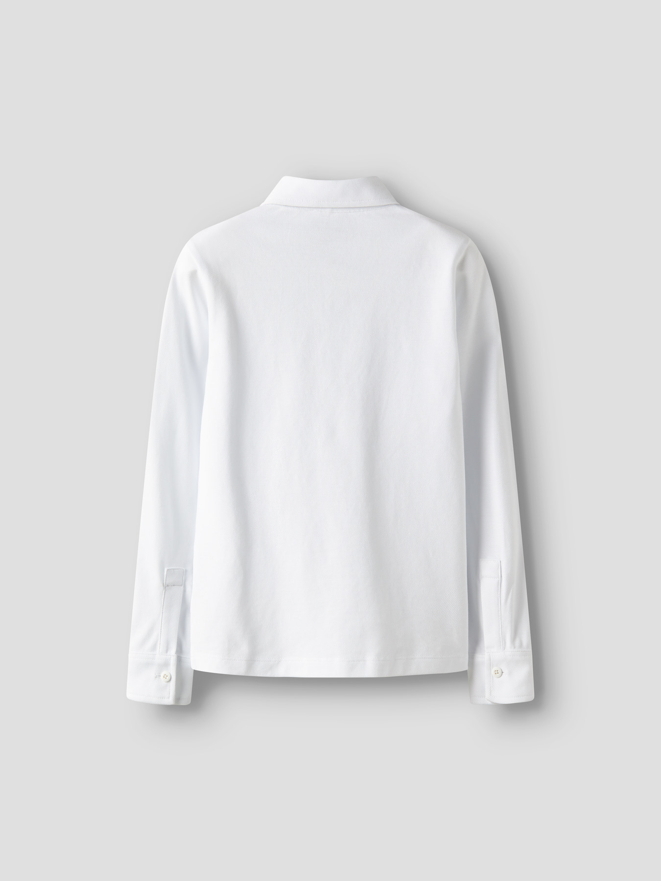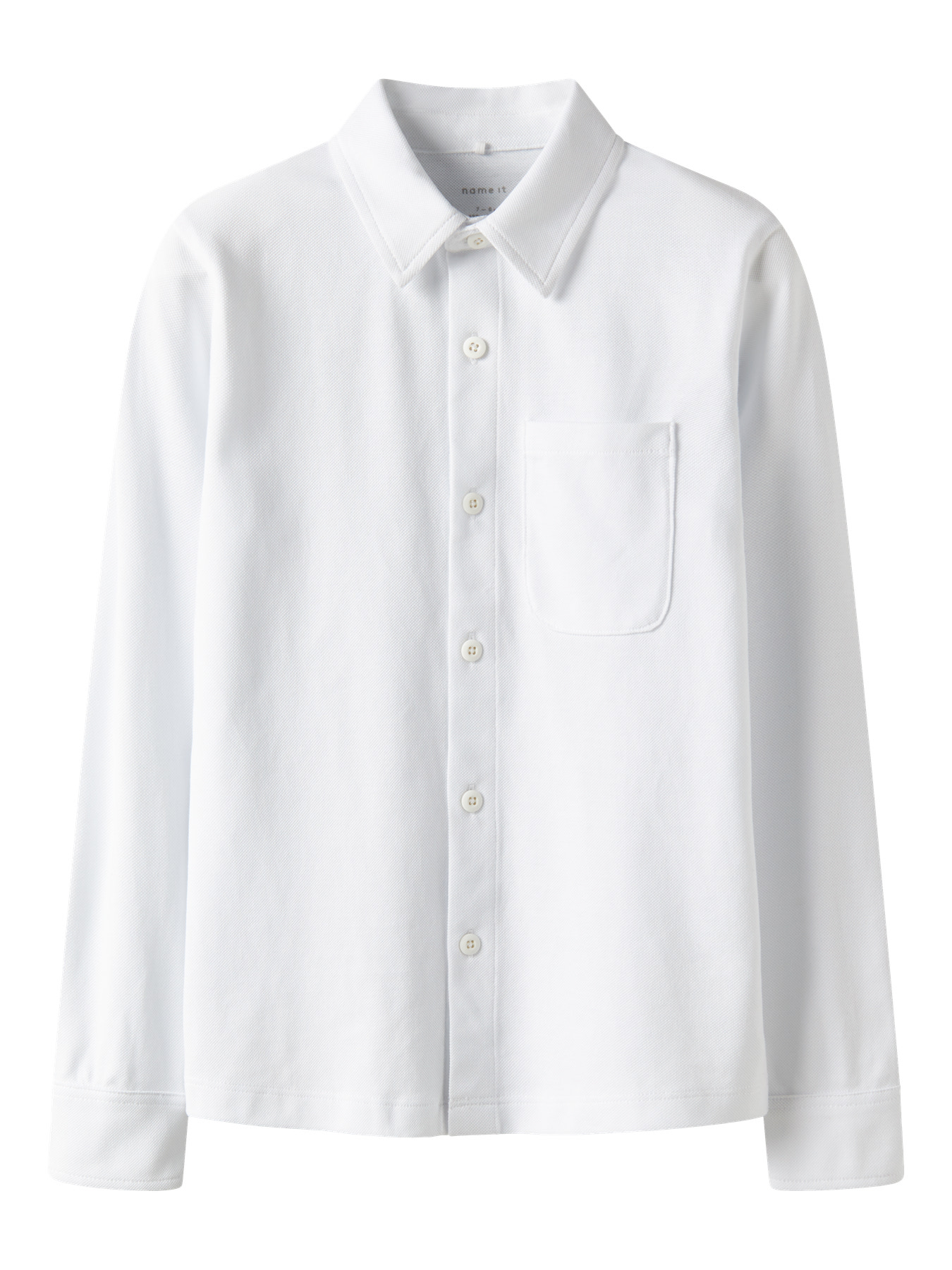 Fed langærmet skjorte fra Name it i hvid med en lomme på brystet. Skjorten er med krave og knapper hele vejen ned.