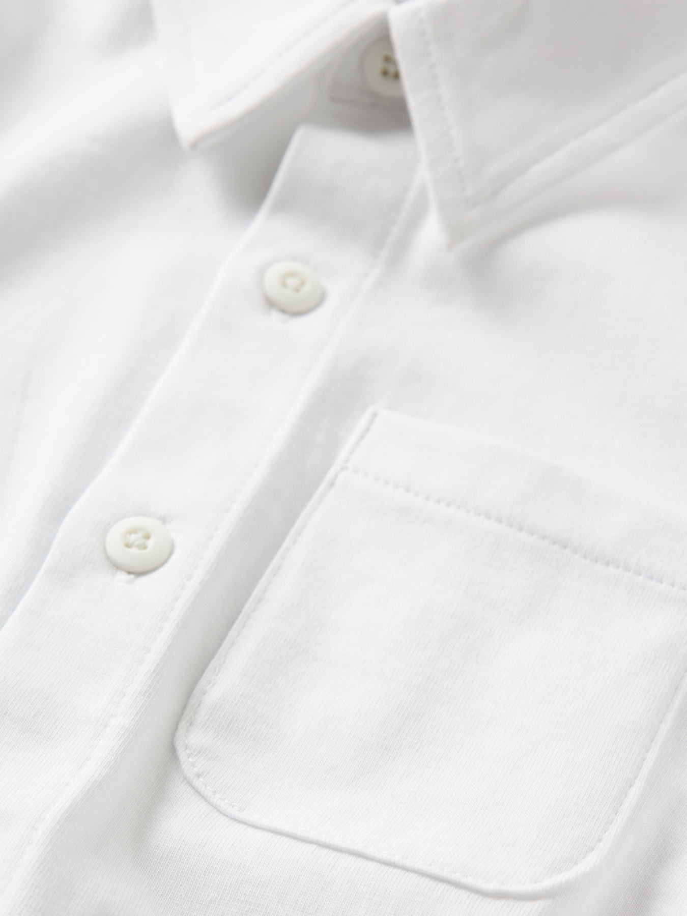Fed langærmet skjorte fra Name it i hvid med en lomme på brystet. Skjorten er med krave og knapper hele vejen ned.