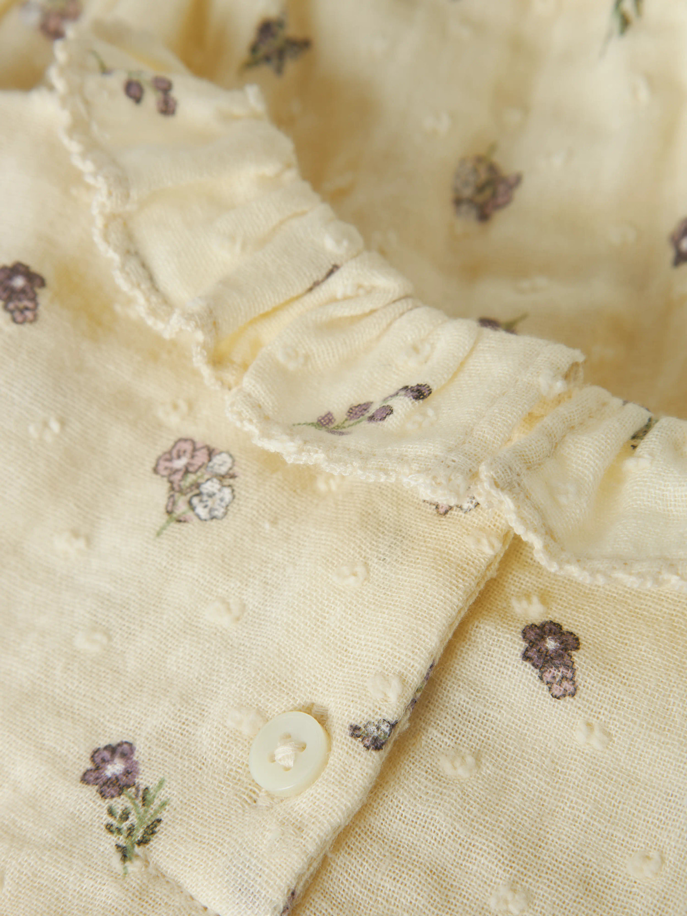 Denne skjortebody er lavet i let muslinstof med tekstureret og blød overflade, der giver et smukt og struktureret udseende. Den har button-down krave, lange ærmer, knappelukning og gennemgående print over hele kroppen. Regular fit sikrer en behagelig pasform.