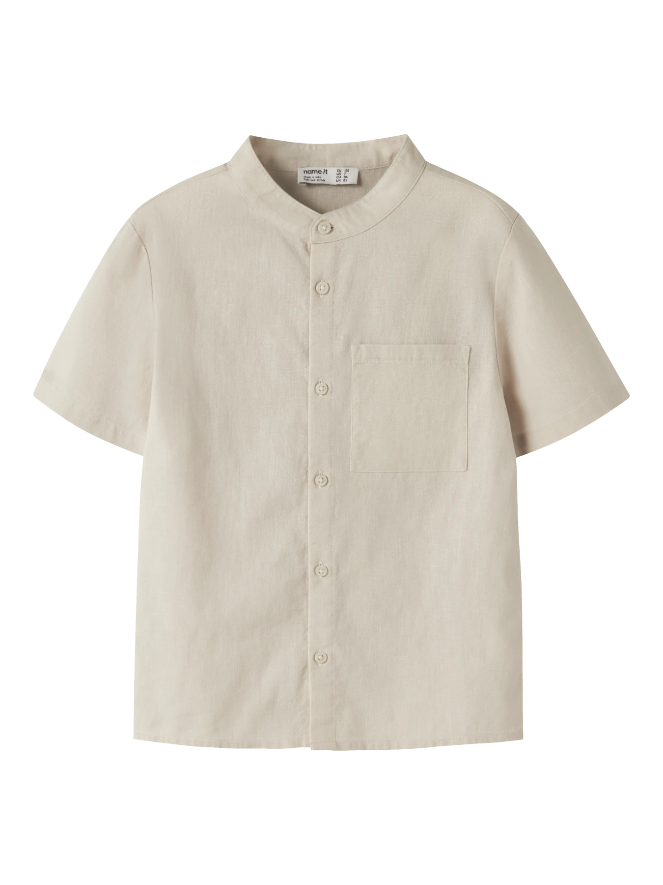 Stilfuld og klassisk skjorte til børn i vævet stof med diskret krydsmønster. Med skjortekrave, korte ærmer, knaplukning foran og brystlomme kombinerer den komfort, funktionalitet og et tidløst look.