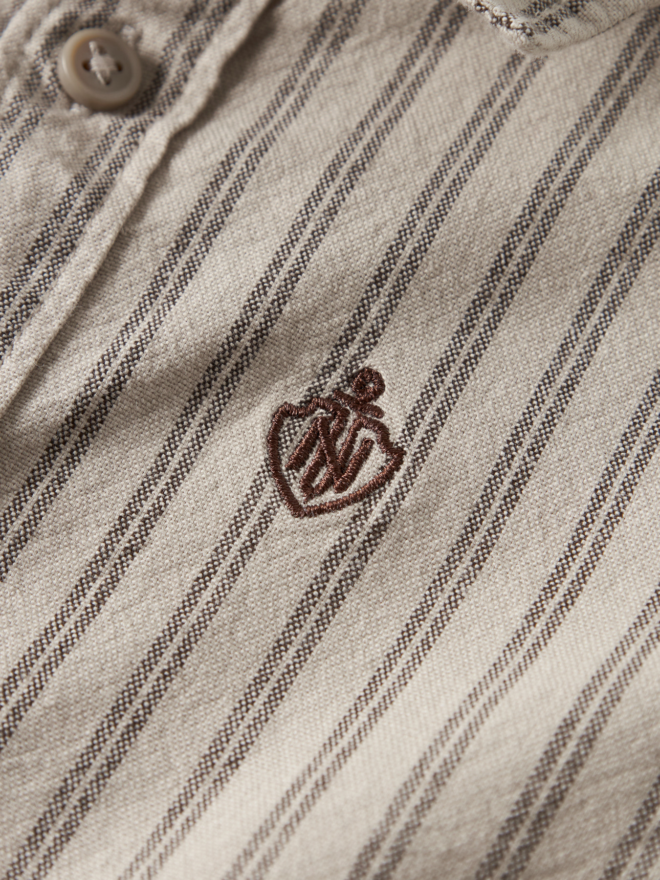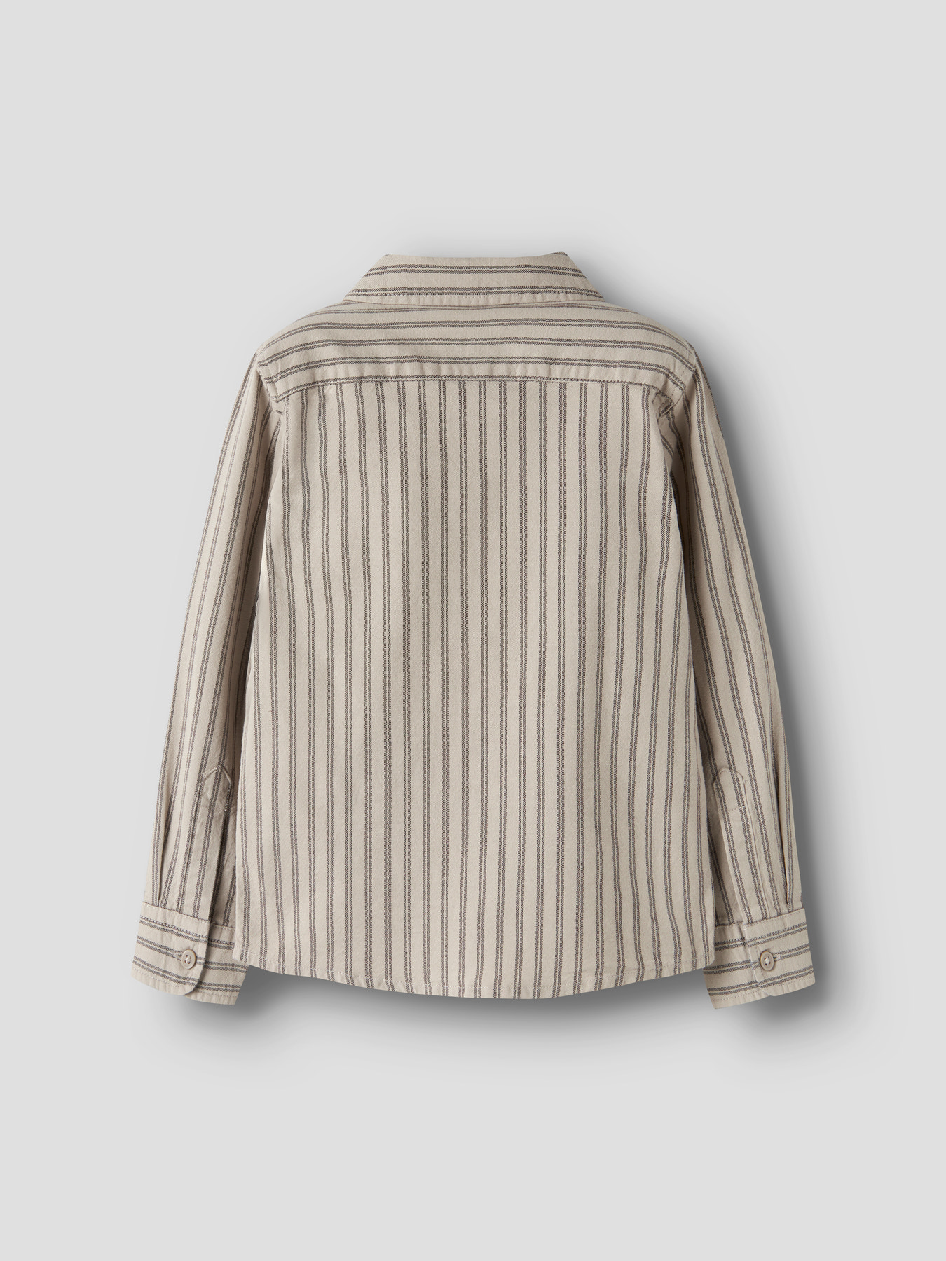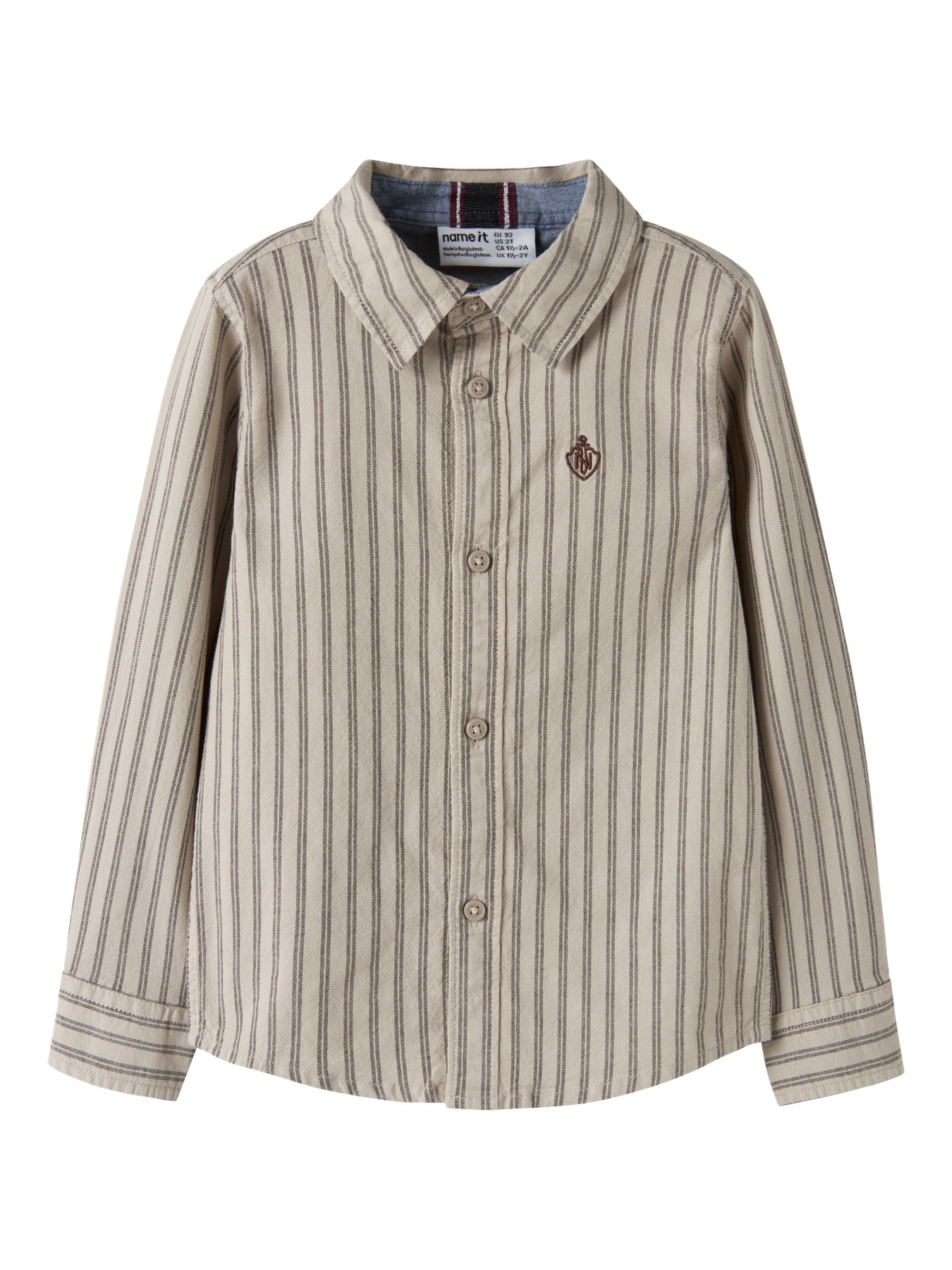 Fed langærmet skjorte fra Name it i beige med logo i toppen. Skjorten er med krave og knapper hele vejen ned.