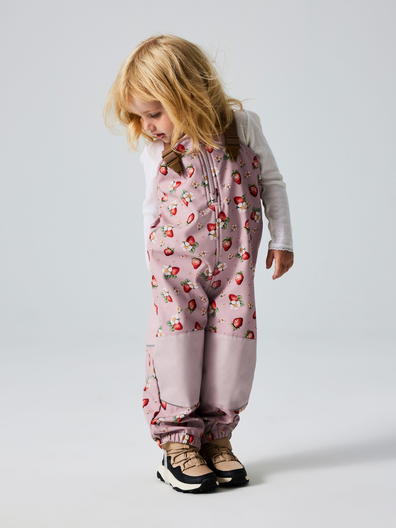 De er funktionelle og trendy med alle nødvendige kvaliteter, som garanterer komfort og bevægelsesfrihed for det aktive barn. De er vindtætte, åndbare og vandtætte. Blødt og varmt mikrofleece på indersiden og ekstra slidstærkt materiale på knæ og bagdel og aftagelige og justerbar fodelastikker. De er med seler for oven der kan åbnes og lukkes samt en lille lynlås så de er nemme for børnene at få på.