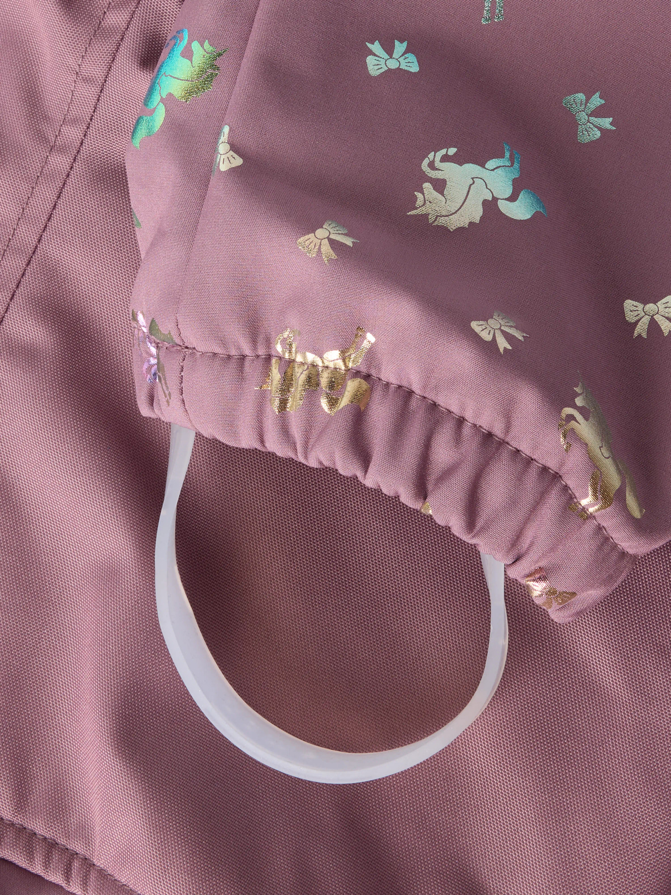 Mega sød softshell dragt fra Name it med det skønneste print. Dragten er med funktionelle lommer i siden og flere fine detaljer. Den er med aftagelig hætte og aftagelige fodbøjler. Der er ekstra slidstærk foring på numse og knæ. Den er med lynlås og beskyttelse ved kraven.