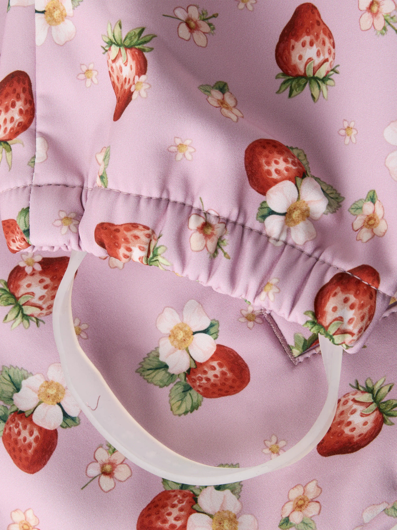 Mega sød softshell dragt fra Name it med det skønneste print af jordbær. Dragten er med funktionelle lommer i siden og flere fine detaljer. Den er med aftagelig hætte og aftagelige fodbøjler. Der er ekstra slidstærk foring på numse og knæ. Den er med lynlås og beskyttelse ved kraven.