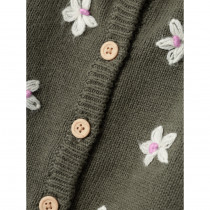 Den sødeste strik cardigan fra name it. Den er med lange ærmer, er rund i halsen og er lavet i en blød og lækker kvalitet. Strik cardiganen kan åbnes og lukkes med knapper foran og så har den de fineste små blomster foran.