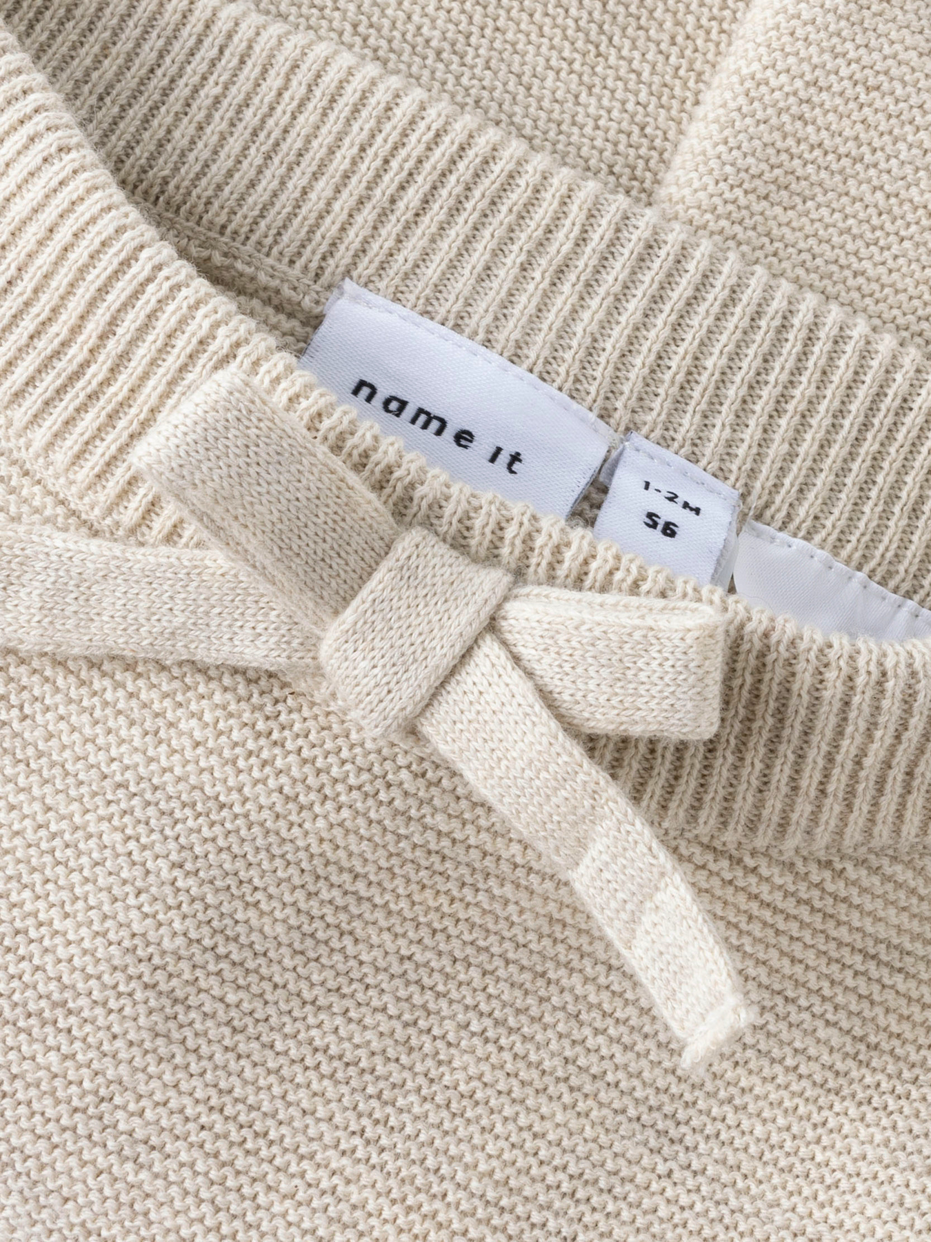 Sødeste små strik bukser fra Name it. De er i super blød kvalitet, smuk lys farve og nuttet sløjfe detalje samt elastik i livet.