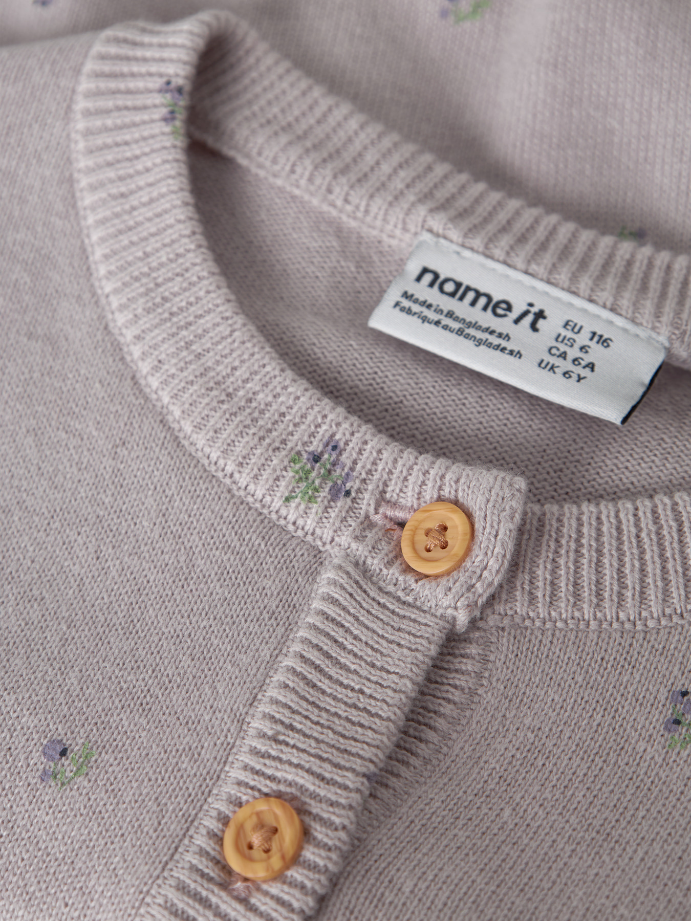 Den sødeste strik cardigan fra name it. Den er i en skøn farve med nogen søde blomster på. Cardiganen har knapper hele vejen ned.