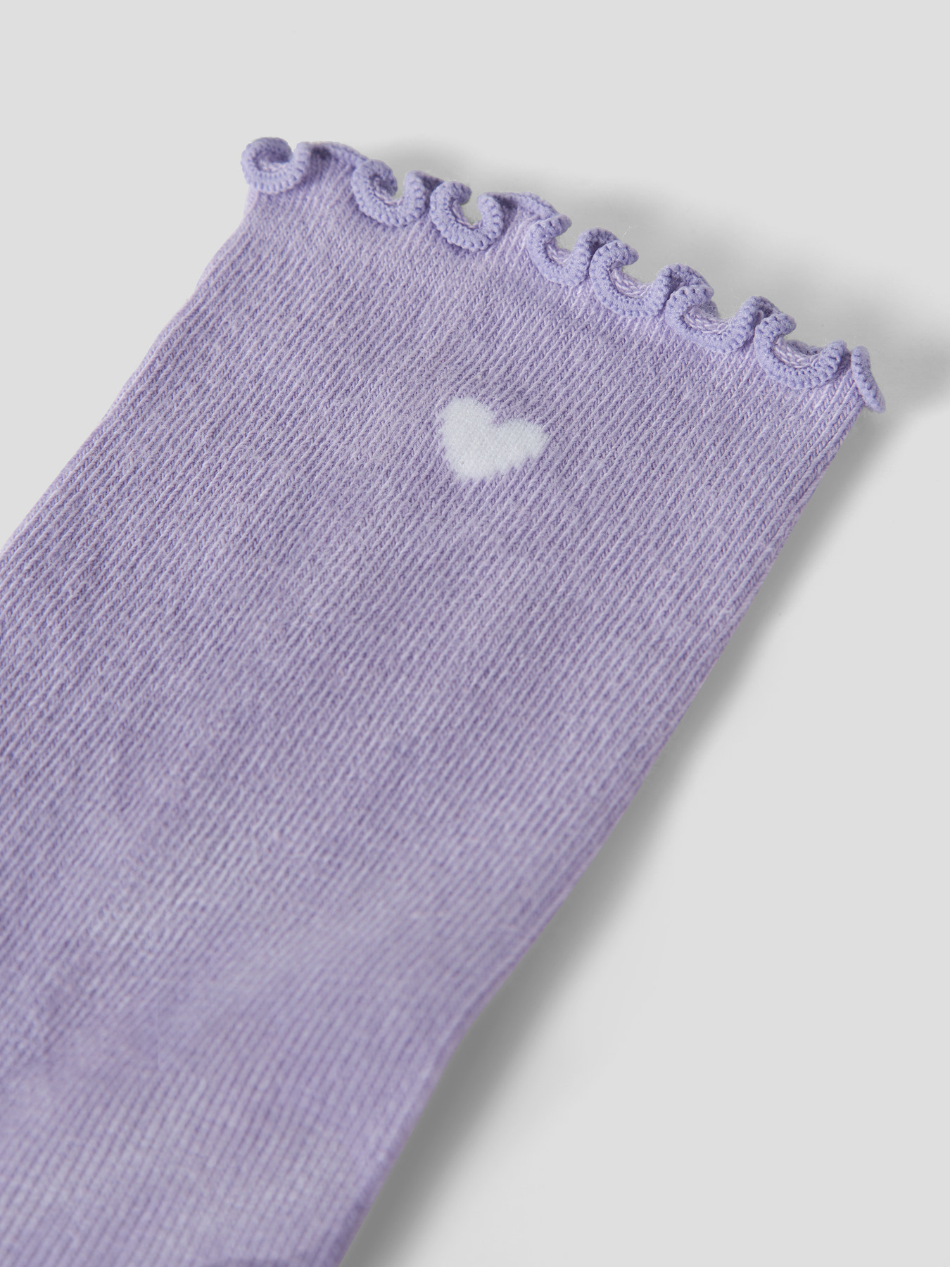 De sødeste strømper fra name it. De er i en flot lilla farve med et lille hjerte på.