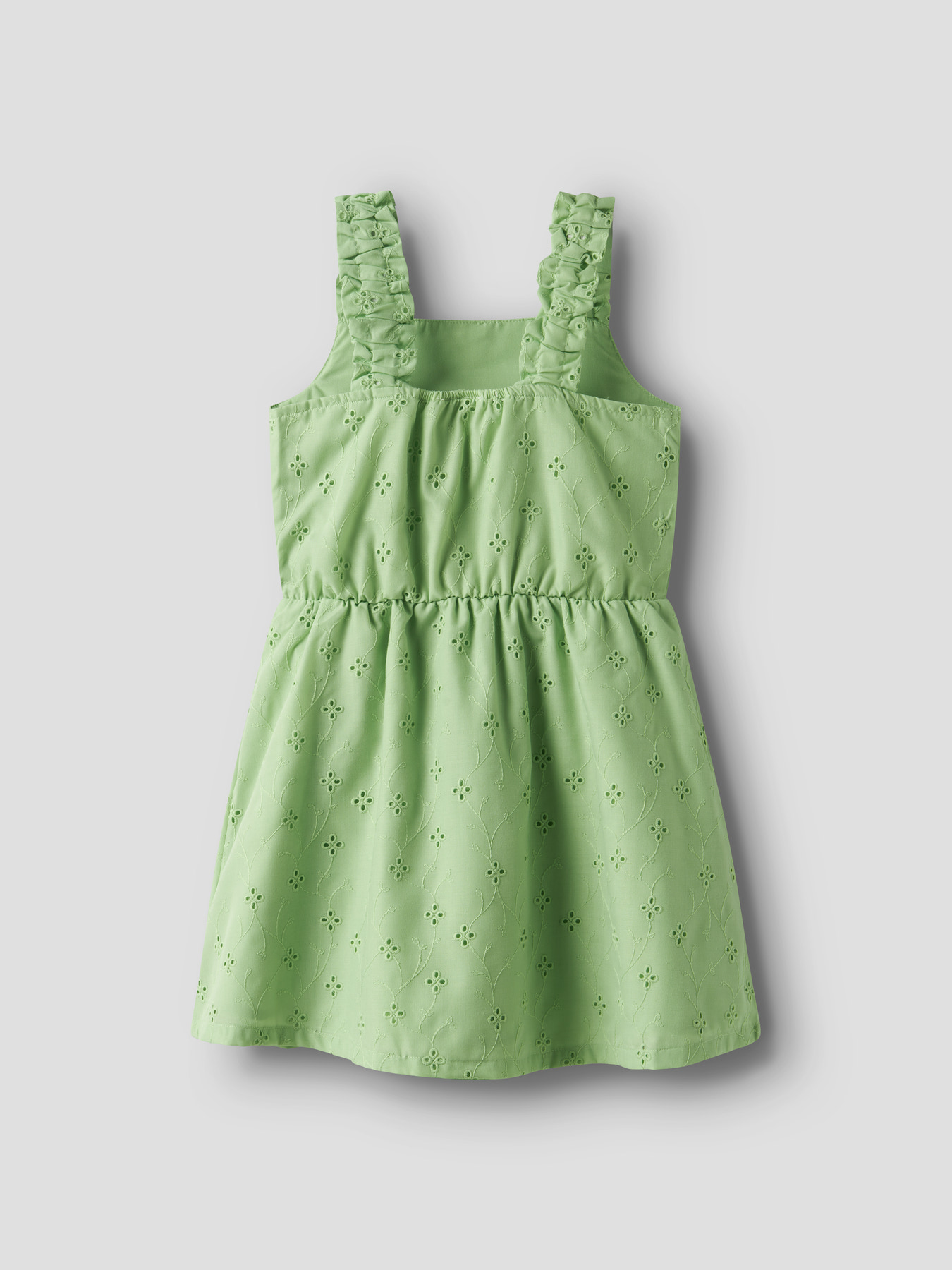Smuk strop kjole fra Name It med hulmønster i stoffet og smukke detaljer ved stropperne.