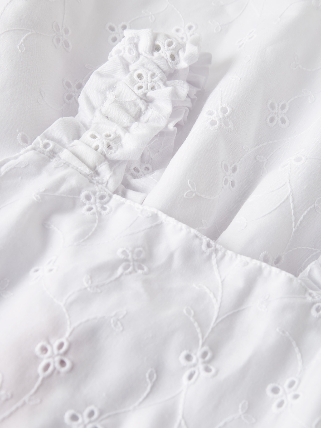 Smuk strop kjole fra Name It med hulmønster i stoffet og smukke detaljer ved stropperne.