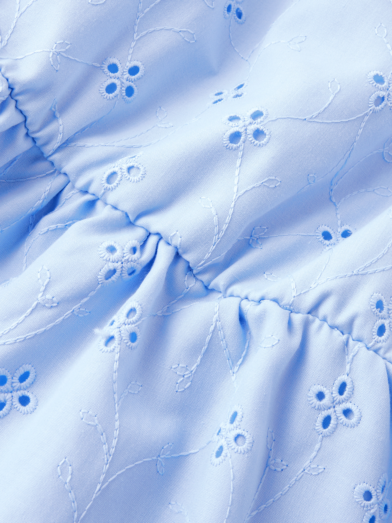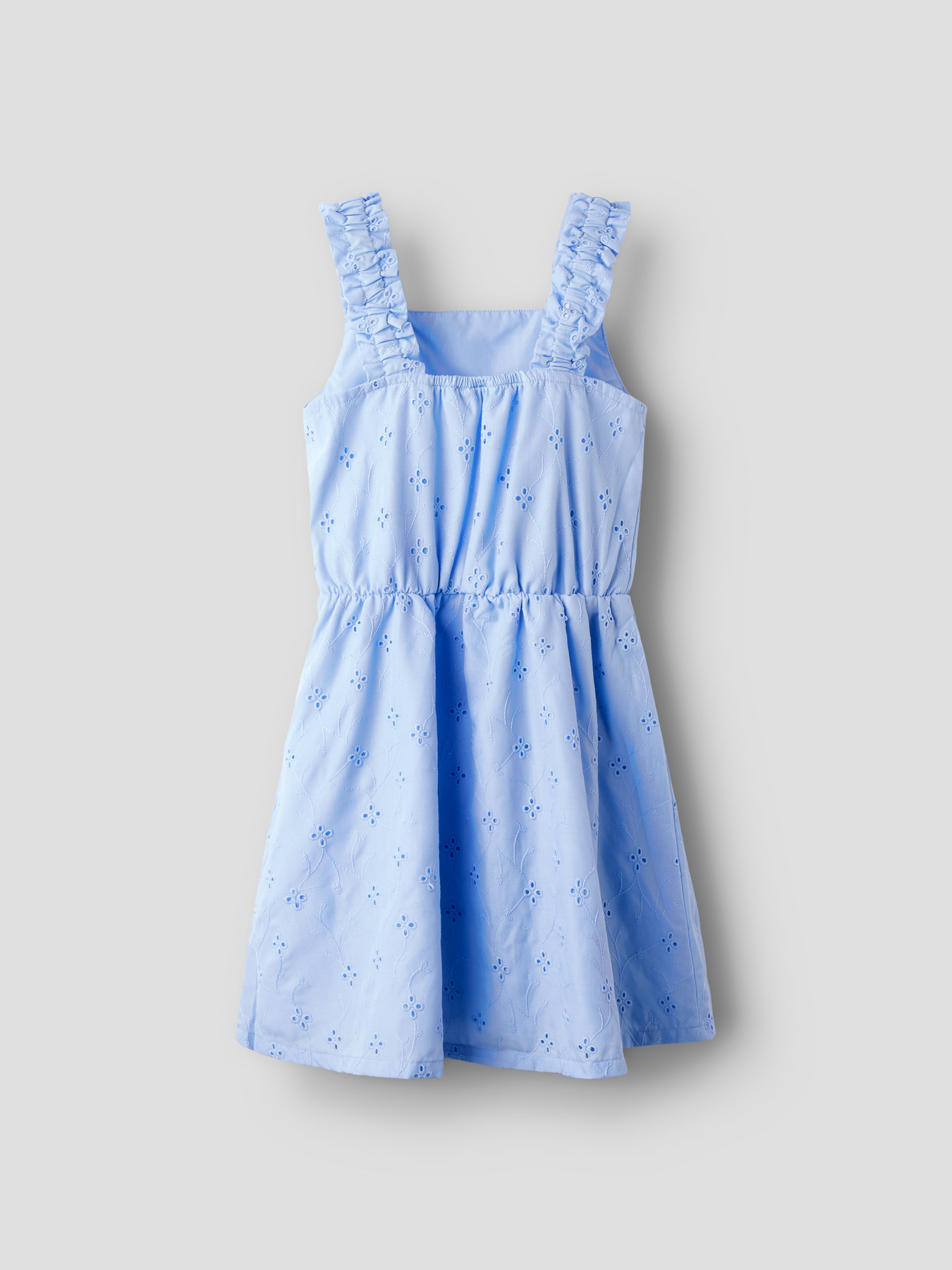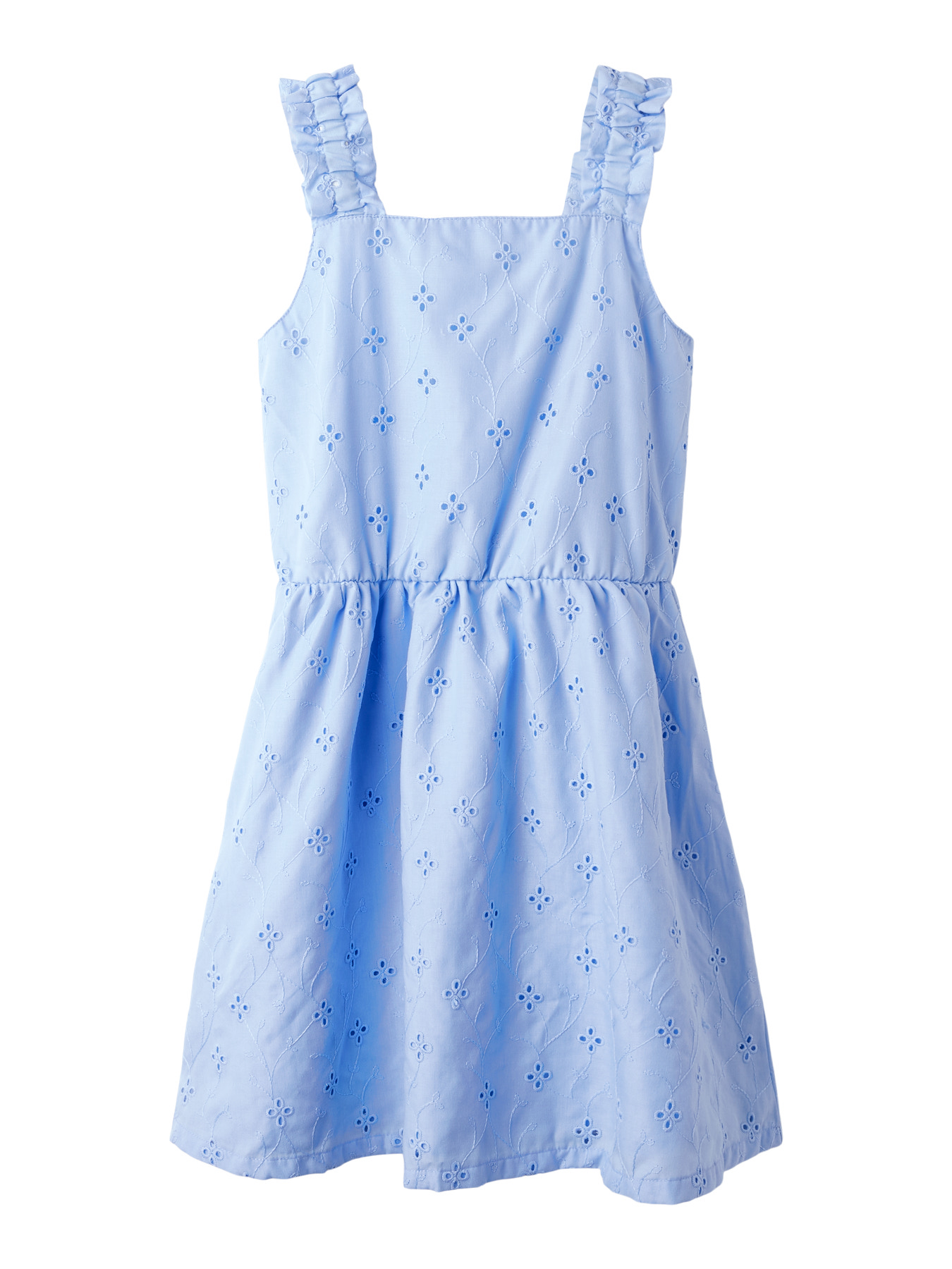 Smuk strop kjole fra Name It med hulmønster i stoffet og smukke detaljer ved stropperne.