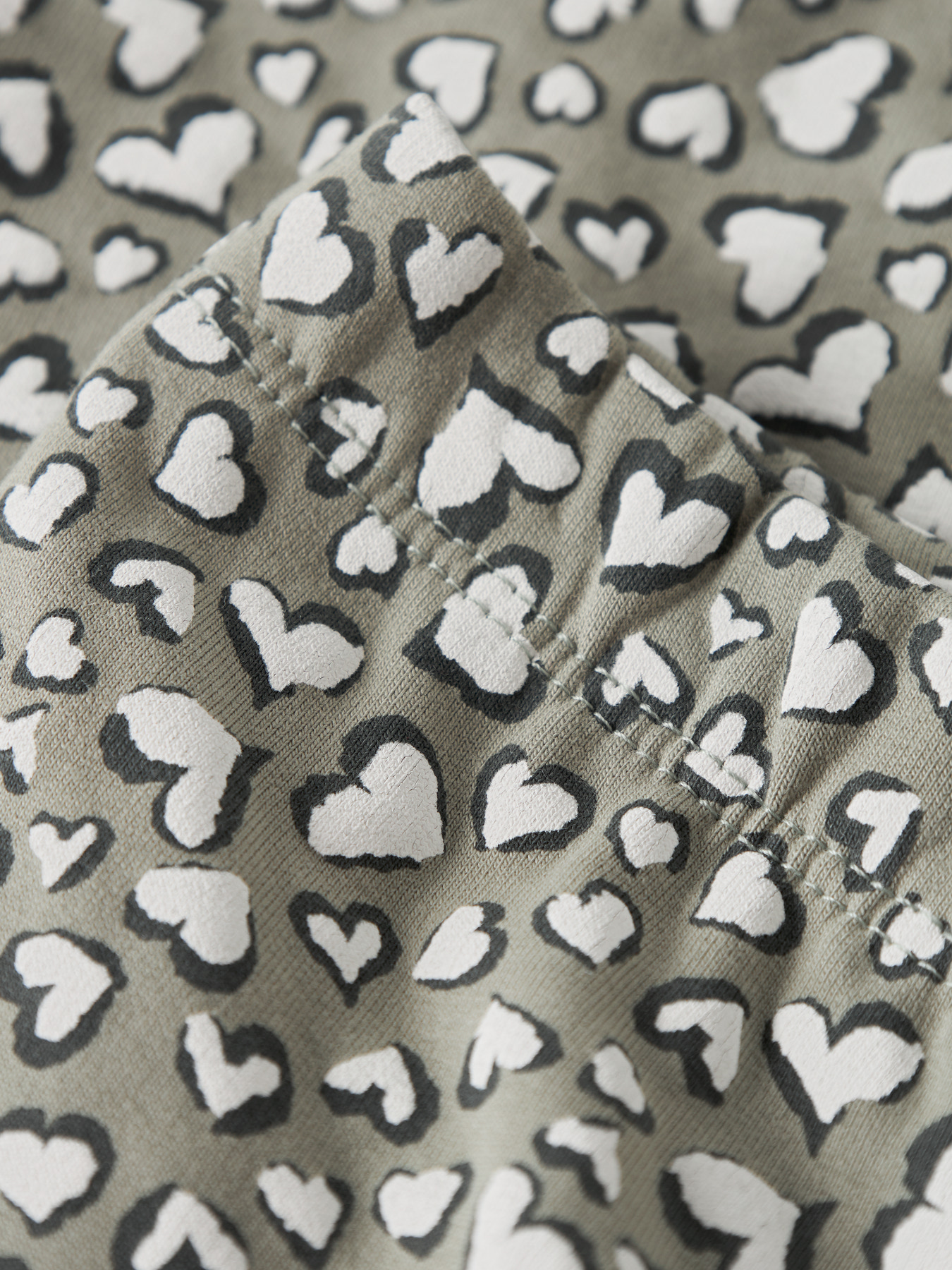 Et par virkelig lækre sweatpants fra Name It med et yndigt hjerteprint over det hele. Bukserne er brede forneden og har en blød elastikkant i taljen.