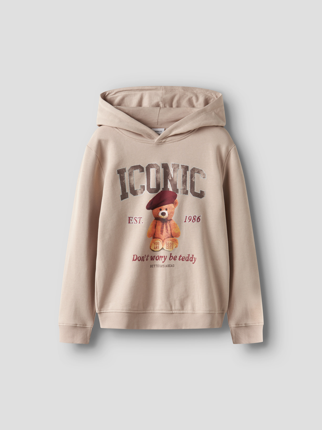 Ultra sej hoodie fra Name It. Hoodien har et regular fit og sidder en smule strammere nederst på ærmerne. Foran er der både et tekstprint og et sødt print med bamser. Hoodien er lavet i et lækkert, blødt materiale med lunt mikrofleece inderst.