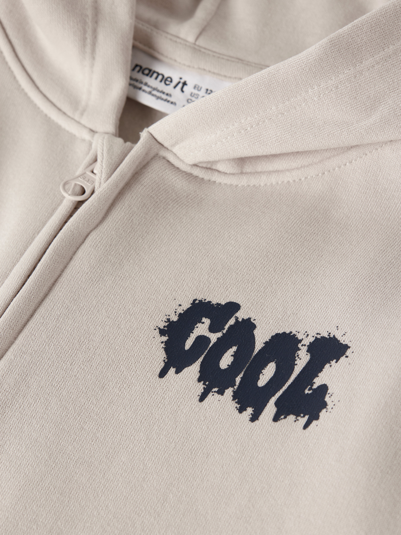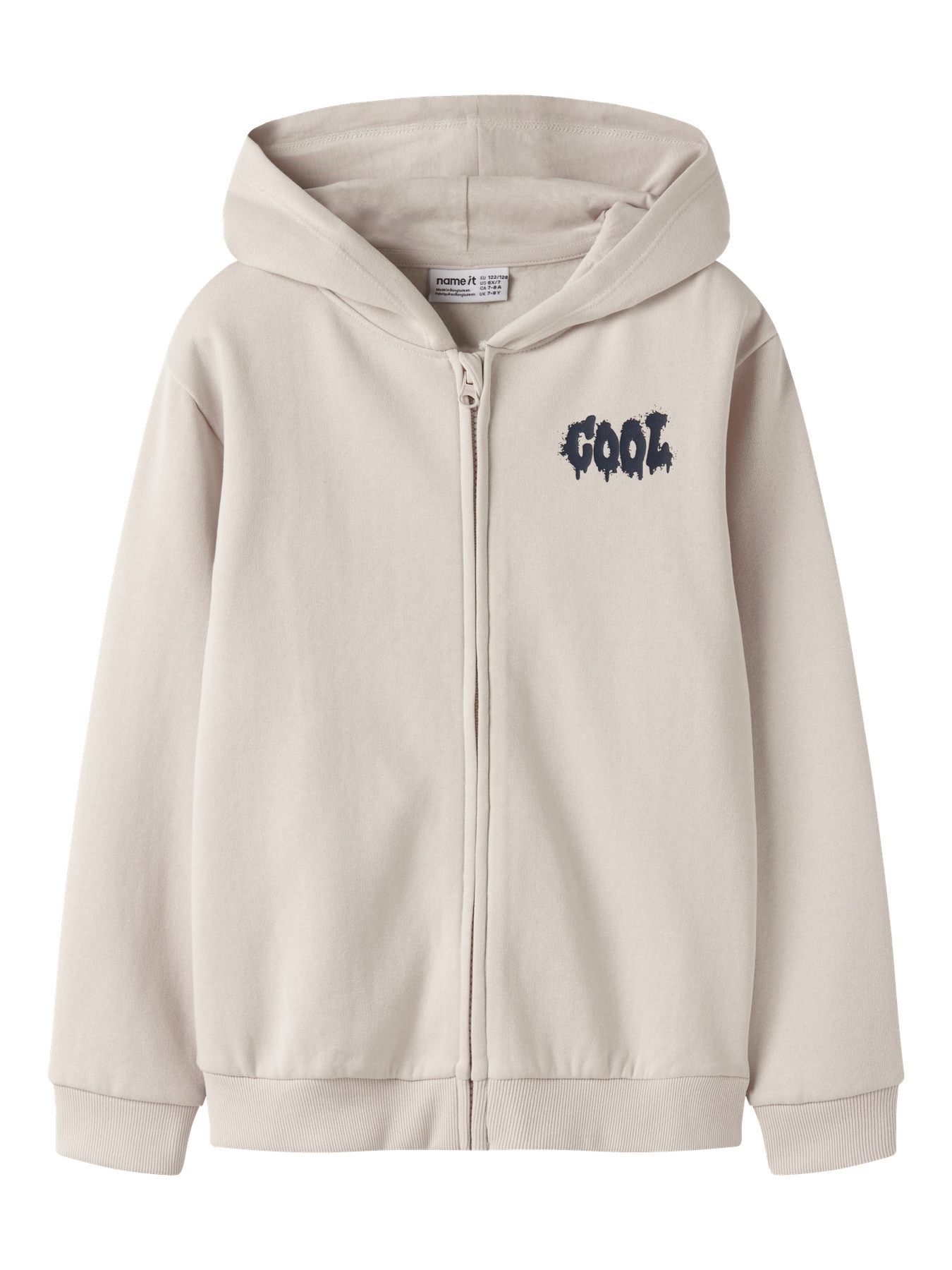 Super lækker sweat cardigan fra Name it. Den er i blød kvalitet, med hætte og lynlås lukning hele vejen ned. Den er i flot lys farve med lille tekst print i toppen.
