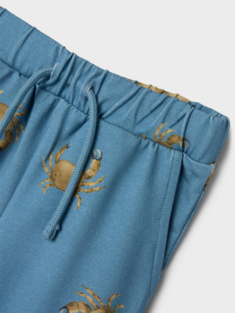 Søde bukser fra name it. Bukserne er i en flot blå farve med krabber på, der er snøre i livet og justerbar elastik indvendig.