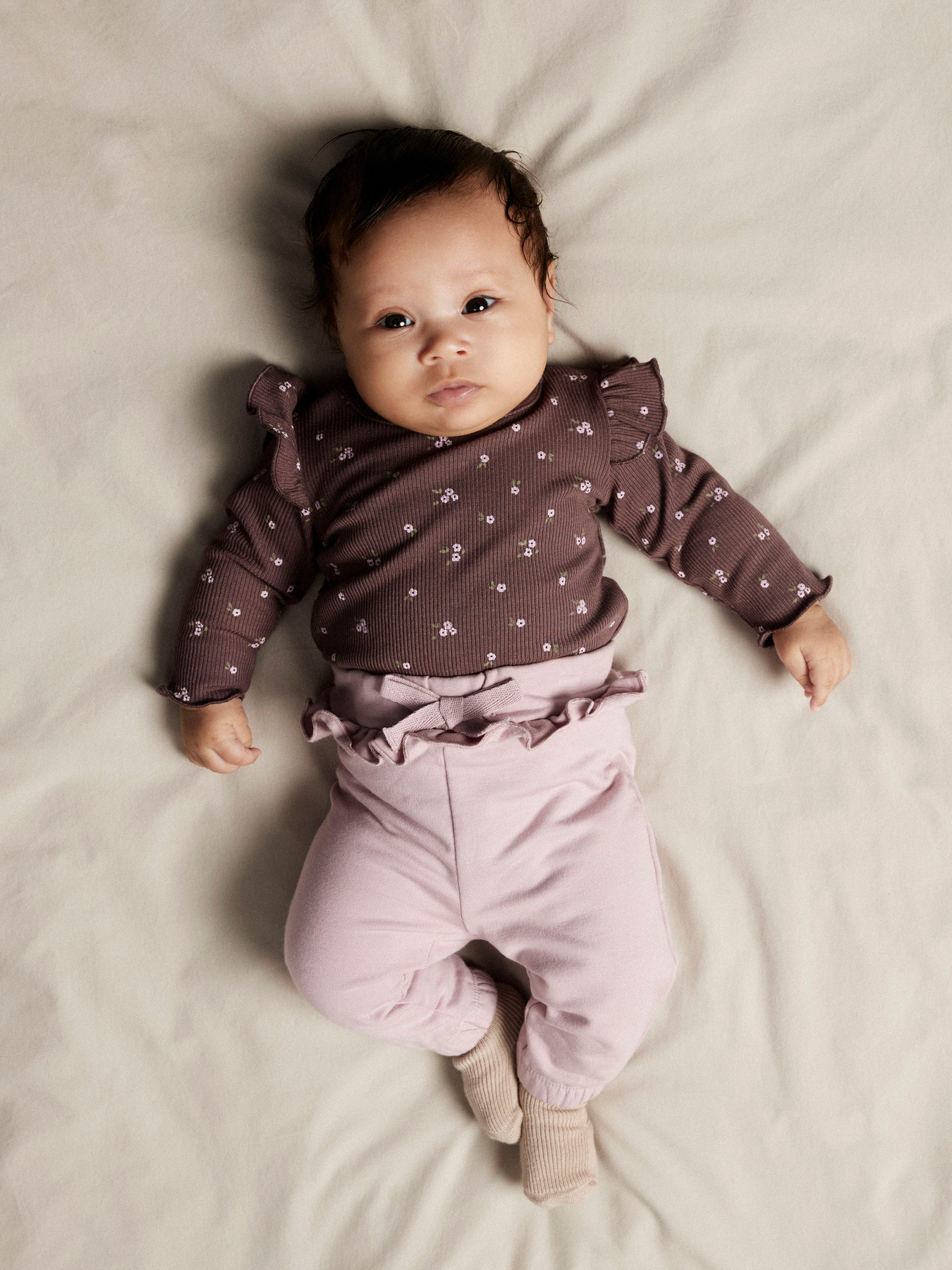 De sødeste sweatpants fra name it. De er i en sød farve med en fin flæsekant og en sløjfe.