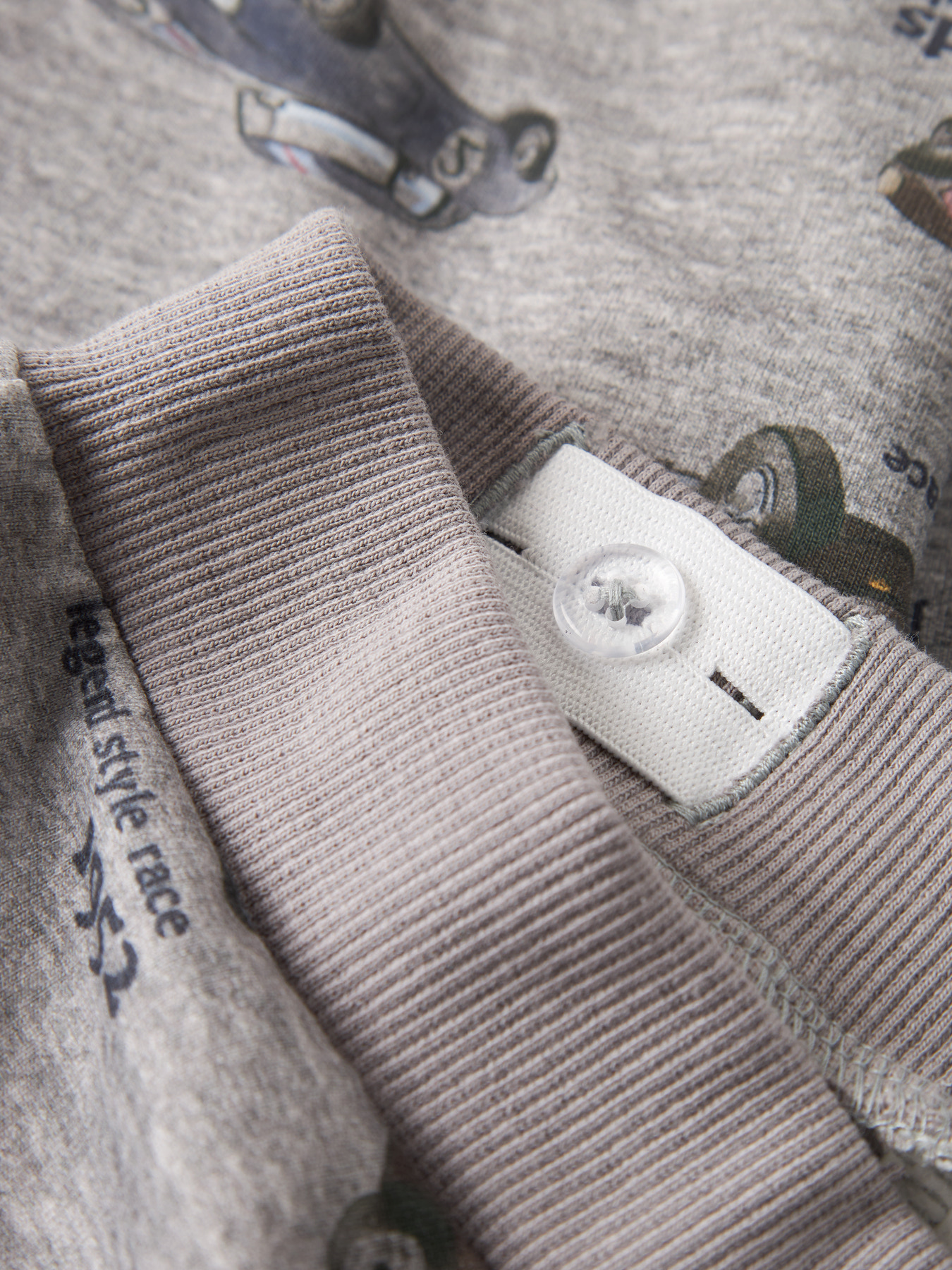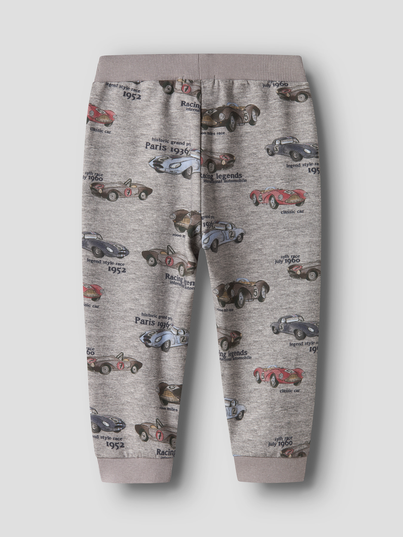 Mega seje sweatpants fra Name it. De er i flot grå farve med print af biler i forskellige farver. De er med elastikkant i livet og størrelsen kan justeres indvendig.