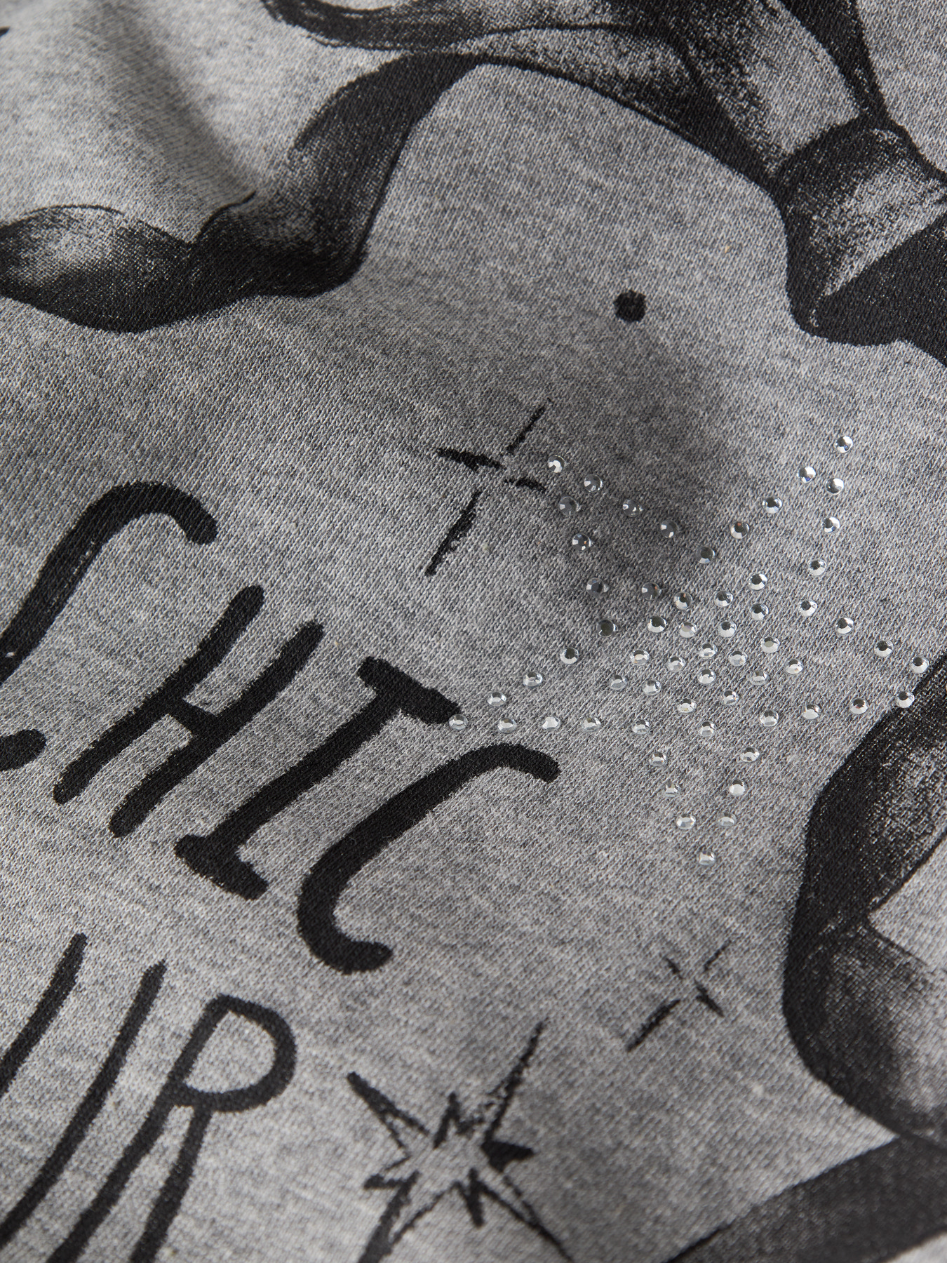 En yndig sweatshirt fra Name it med glitter detaljer. På sweatshirten er der et lille, fint print foran og et stort, smukt print på ryggen. Blusen er i relaxed fit og har ribkanter ved hænder og i bunden.