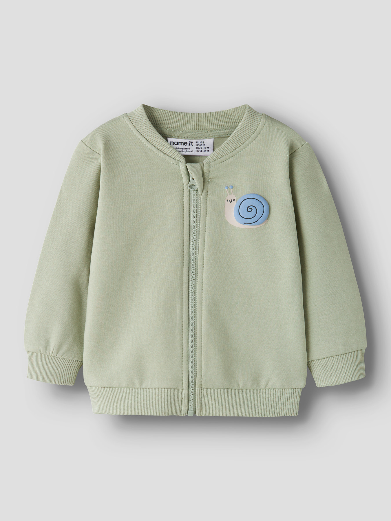 Mega sød baby sweatshirt fra Name It. Den er i lækker lysegrøn farve, med et lille print af en snegl foran. Super lækker blød kvalitet.