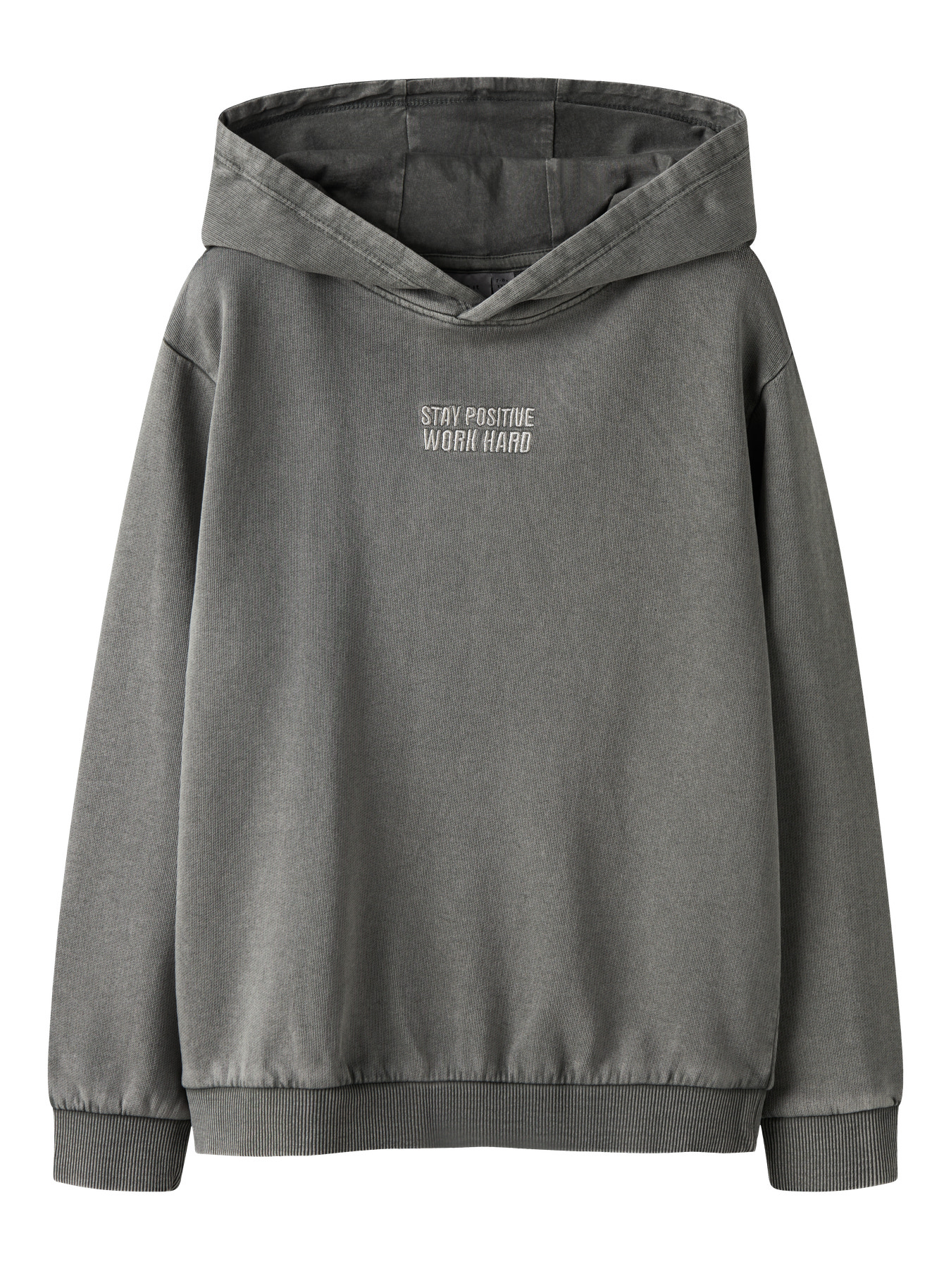 Mega sej sweatshirt hoodie fra name it. Den er i et sej slidt look i en fed grå farve.