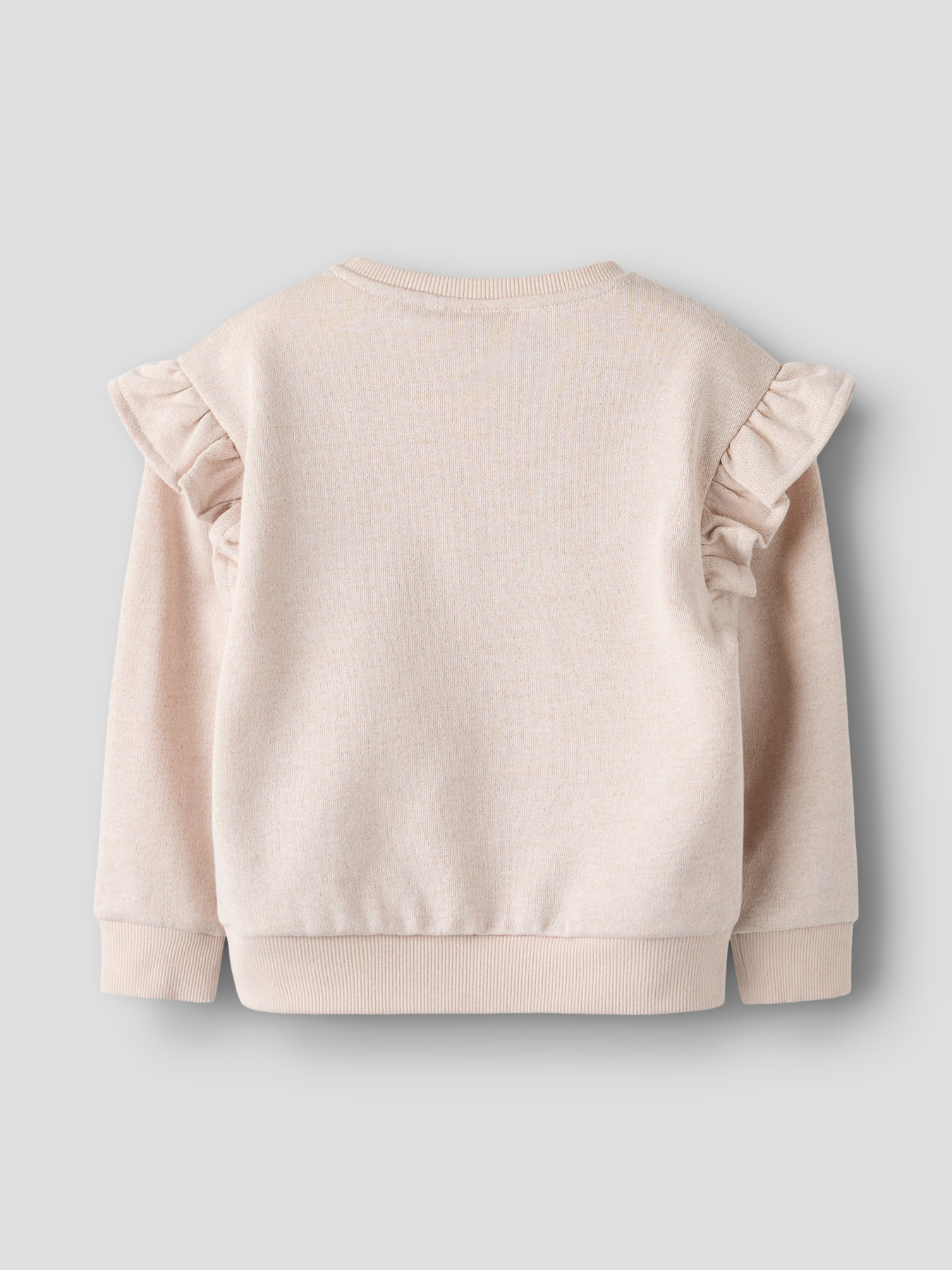 Den sødeste sweatshirt fra name it. Blusen er i en skøn farve og med flæser på skulderne.