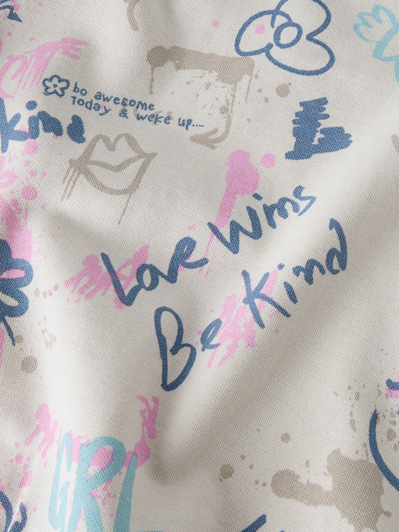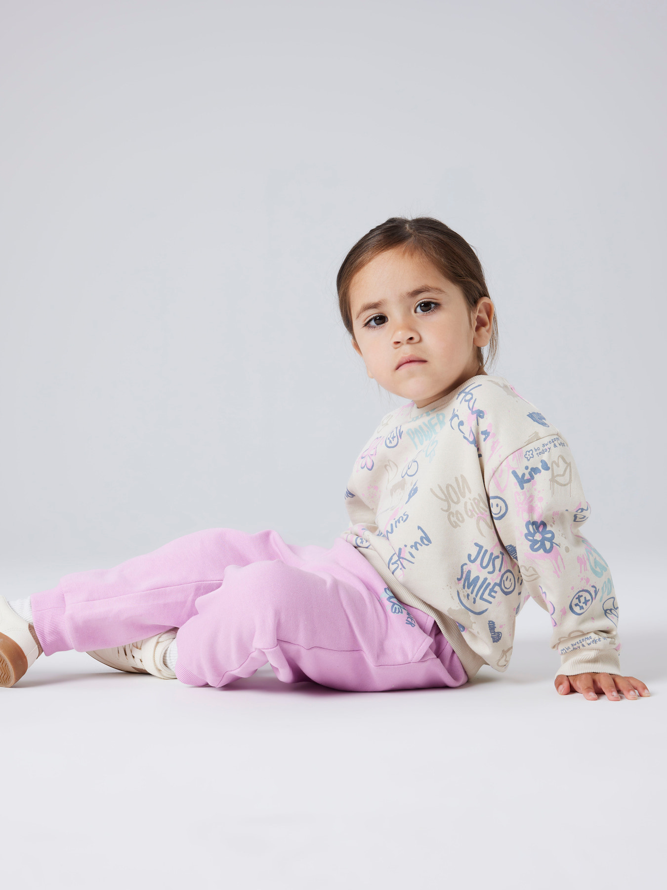 En sød sweatshirt fra Name it med tekst og små tegninger over det hele. Blusen er dejligt blød indvendigt og har ribkanter i halsåbningen, forneden og ved hænderne.