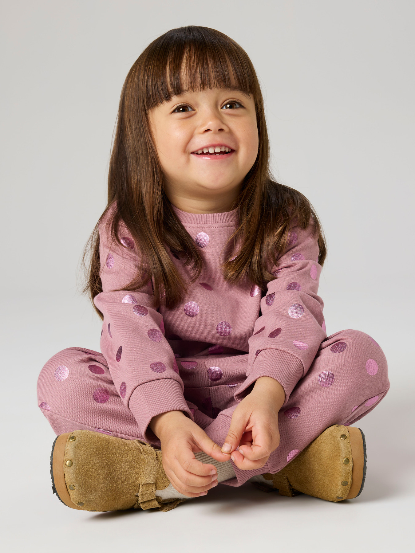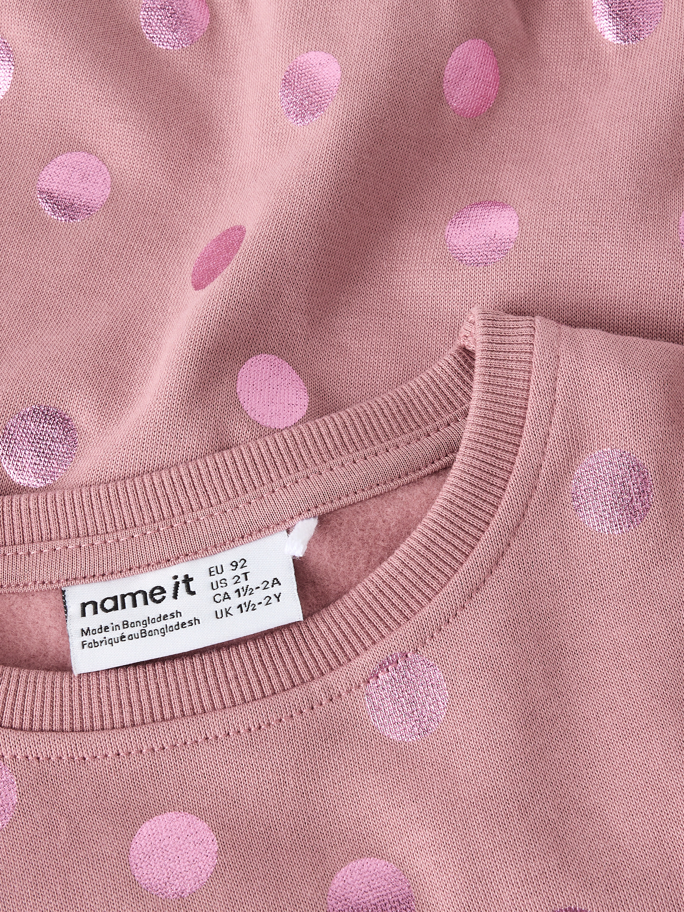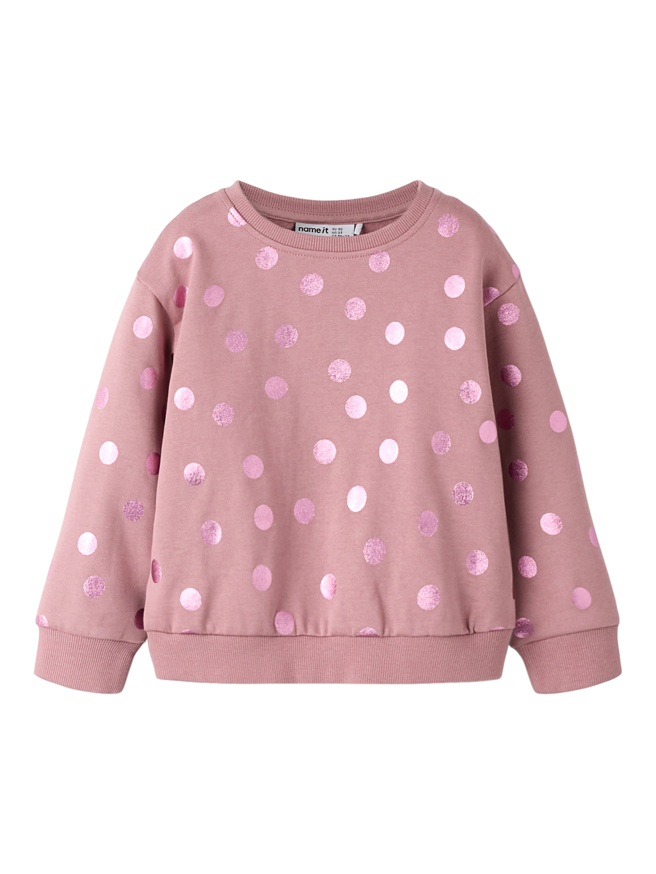 En yndig sweatshirt fra Name it med skindende prikker på. Blusen er dejligt blød og har ribkanter ved halsåbning, forneden og ved hænderne.