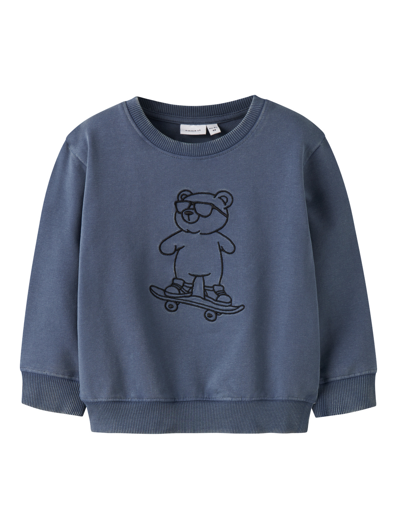 Den sejeste sweatshirt fra name it. Den er i en skøn blå farve med en bamse på.