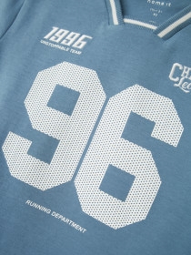 Sej t-shirt fra Name it i en lækker, blød bomuldskvalitet. Blusen har mange fede sporty detaljer med nummeret og tekstprintet på maven og striben rundt i halsåbningen.