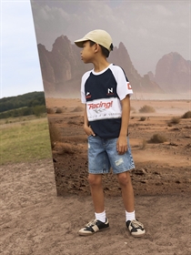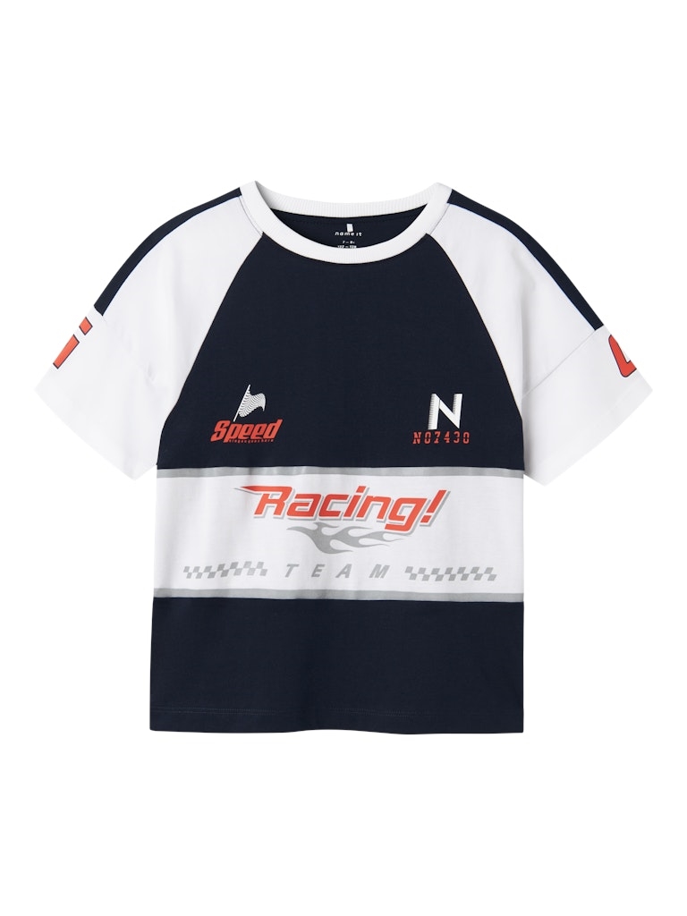 Mega cool t-shirt fra Name it. Den er med "racing" tekst print og farve opdelt. Den er i regular fit og lækker kvalitet.
