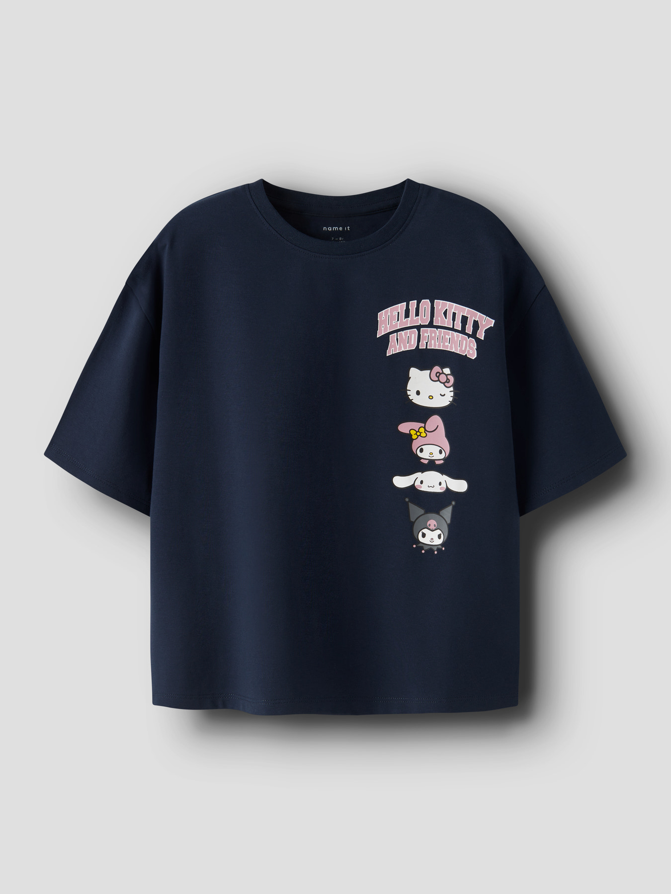 Mega sej t-shirt fra Name It. T-shirten har et loose fit og et mindre print foran på venstre bryst, mens der bagpå er et stort print. T-shirten har rund hals.