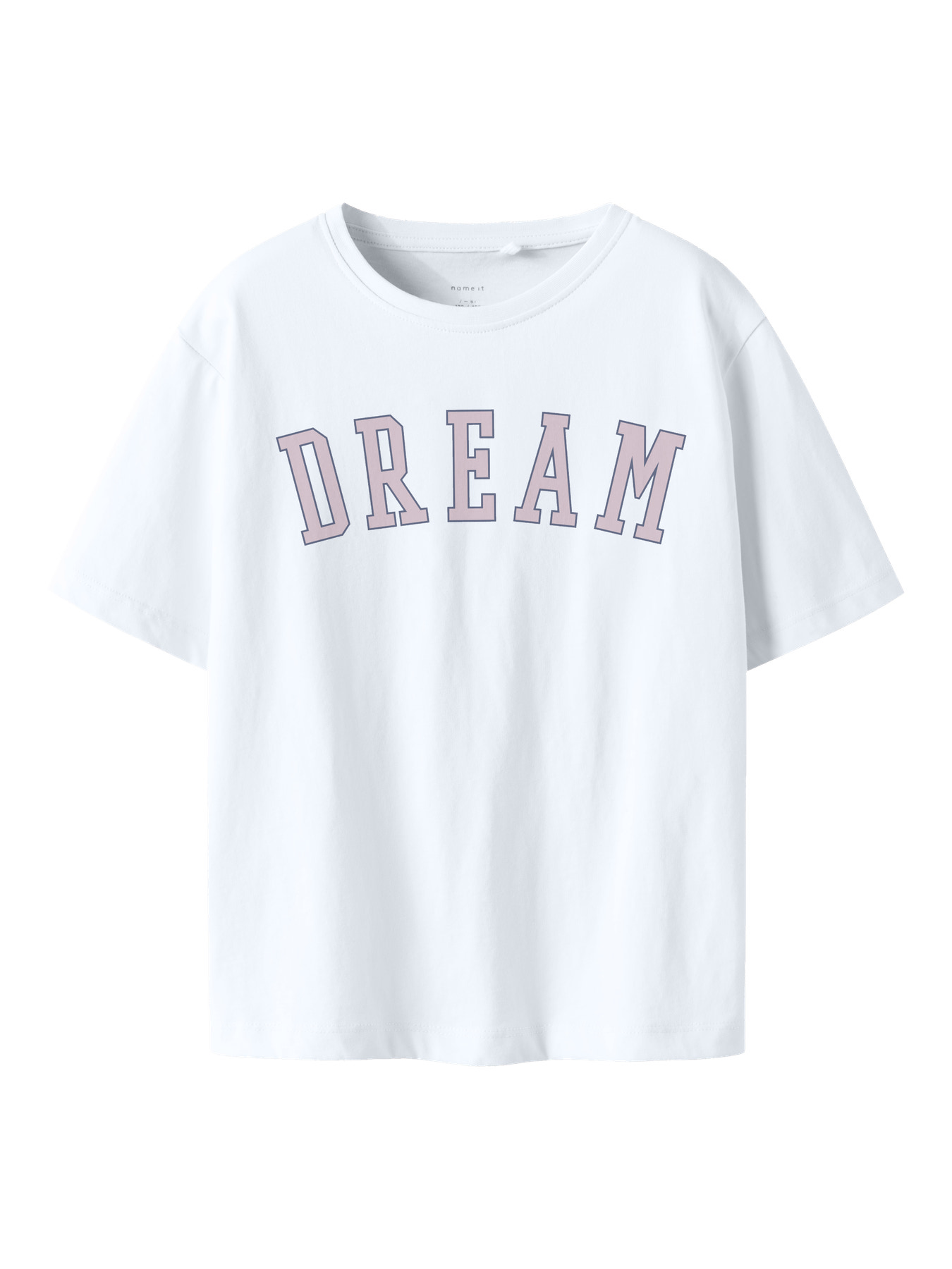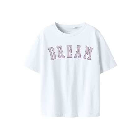 Super fed t-shirt fra name it. Den har rund hals og er hvid med Dream tekst på.