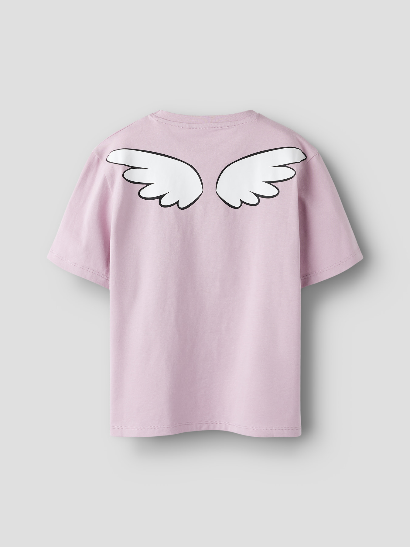 Mega sej t-shirt fra Name It. T-shirten har et loose fit og et mindre print foran på brystet, mens der bagpå er et print med vinger. T-shirten har rund hals.