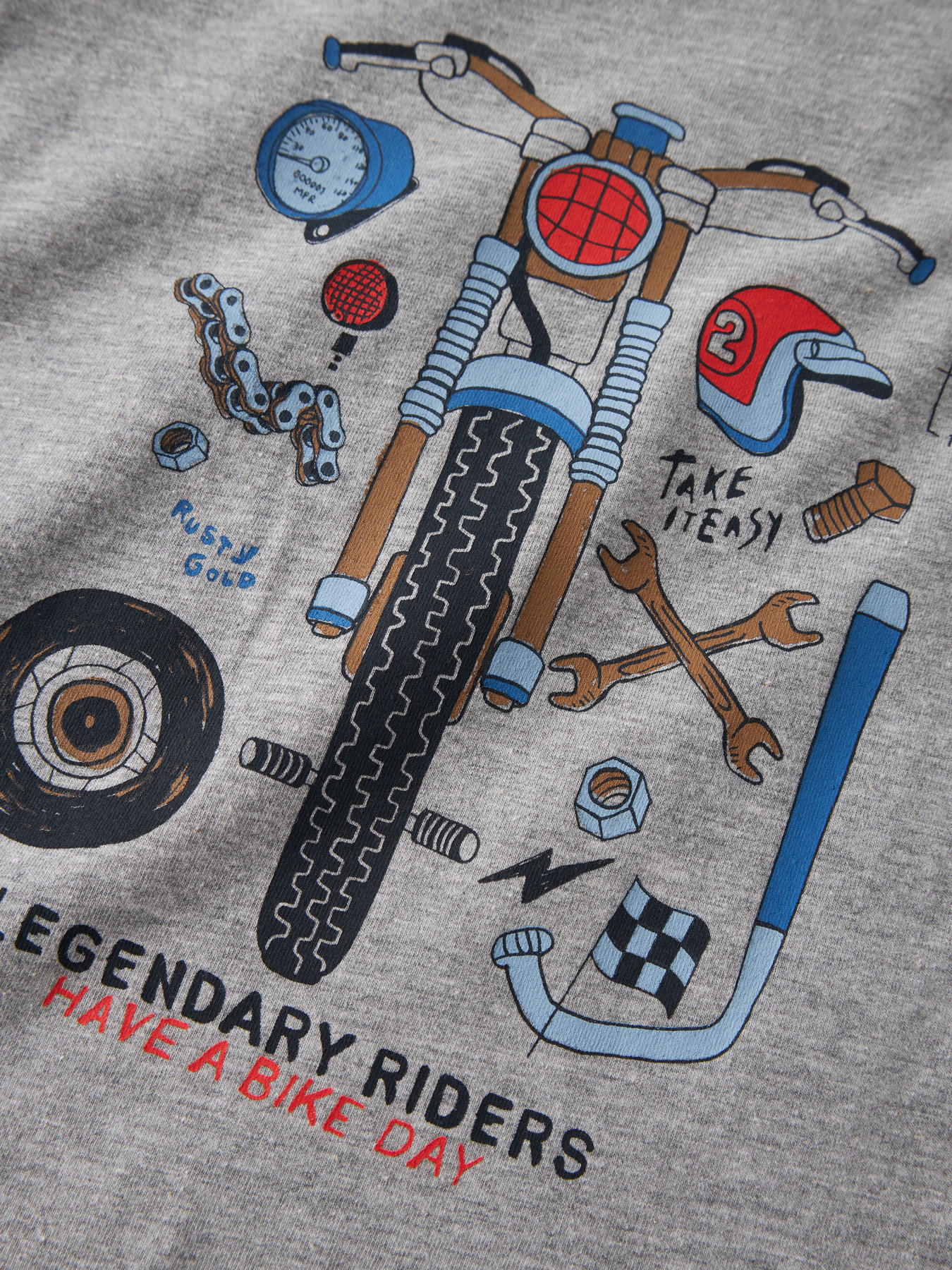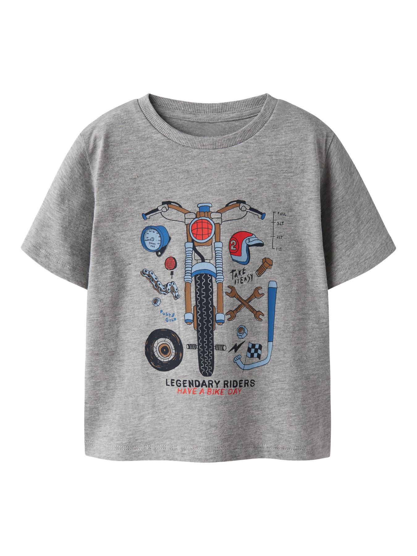 En sej t-shirt fra Name it med et stort motorcykel print på maven. T-shirten er i regular fit, har rund halsåbning og er dejligt blød.