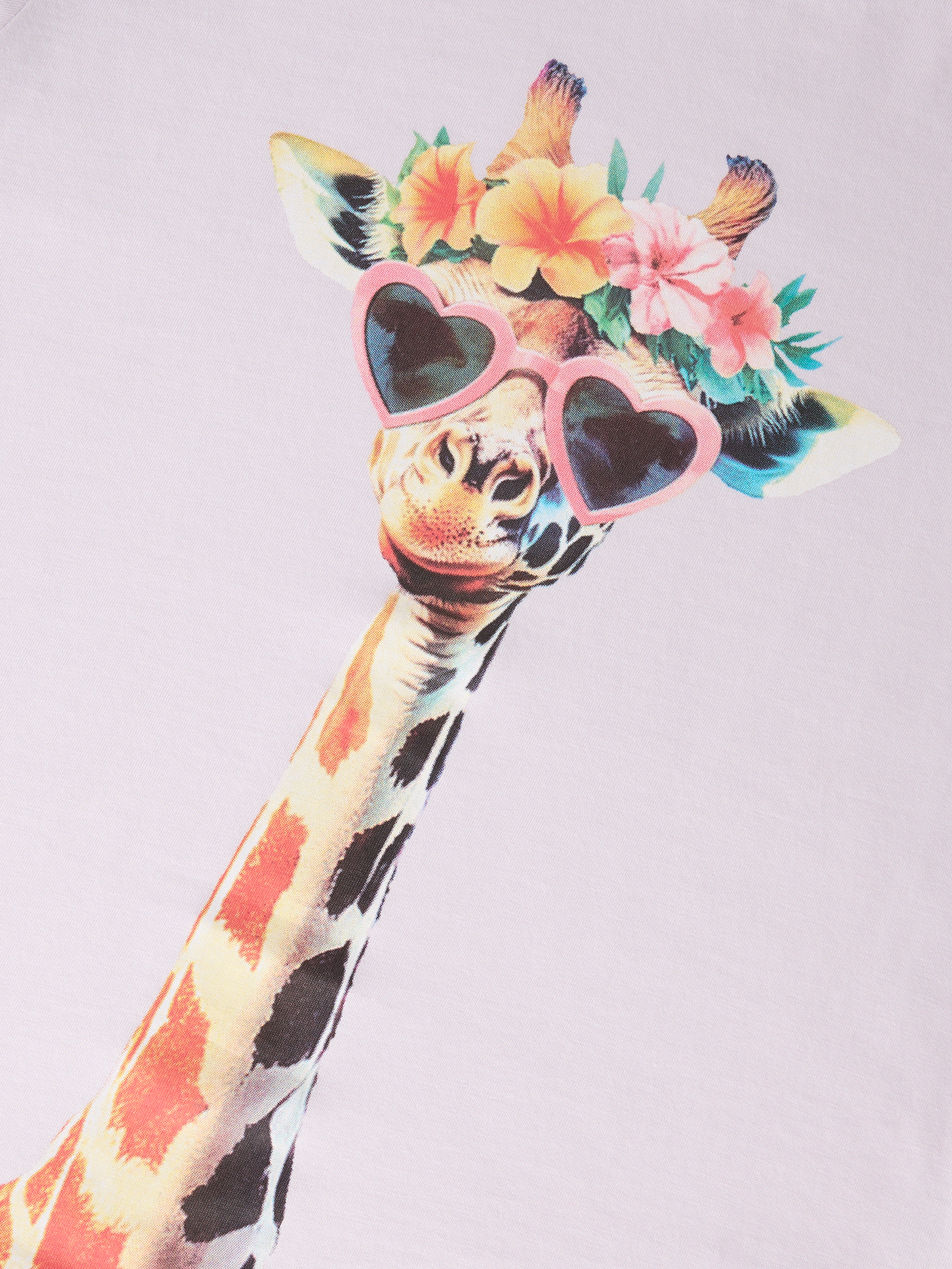 Opdatér dit barns garderobe med en cool top, der passer perfekt til både hverdag og særlige anledninger. Toppen er fremstillet i blød og let jersey, som er strækbar og behagelig mod huden, så den giver optimal komfort og bevægelsesfrihed. Den har rund hals, korte ærmer og et detaljeret fotoprint, der skaber et realistisk og iøjnefaldende udtryk. Med sin regulære pasform er den både komfortabel og nem at style.