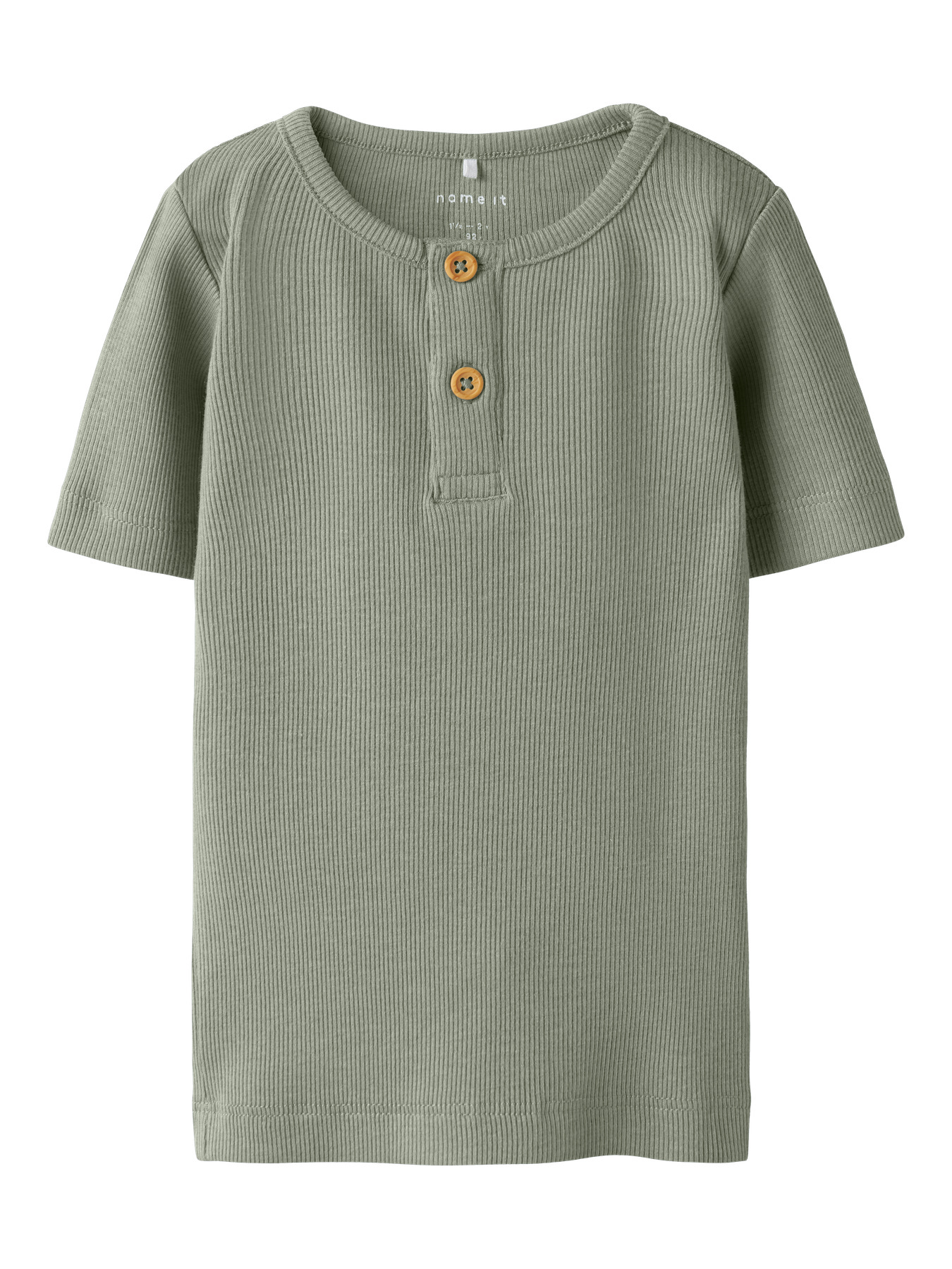 T-shirt der er lavet i ribstrik med lodret struktur og god elasticitet, som giver en behagelig pasform og et tidløst look. T-shirten har rund hals, korte ærmer, knaplukning og en klassisk regular fit for optimal komfort.