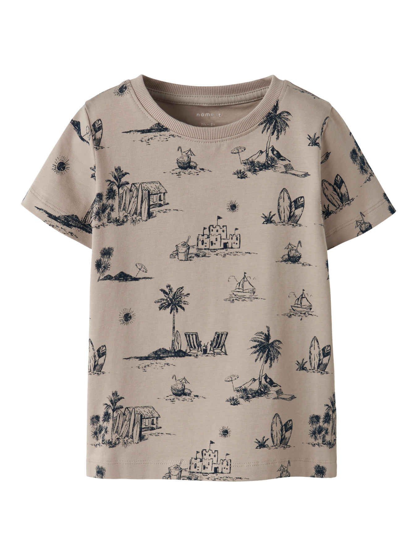 Opdater dit barns garderobe med en cool t-shirt fra Name It. Den er lavet i blød og strækbar jersey, som giver god komfort og bevægelsesfrihed. Modellen har rund hals, korte ærmer, all over print og en klassisk regular fit.