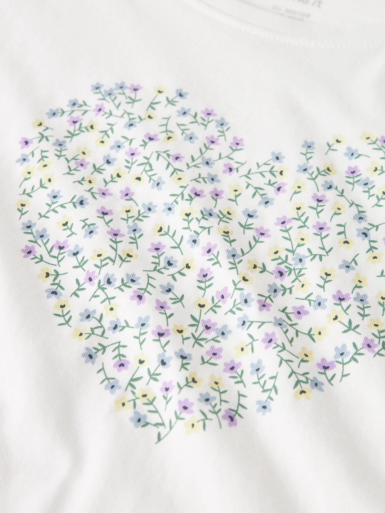 Blød og strækbar jerseykvalitet, der giver komfort og bevægelsesfrihed. Den har rund hals, korte ærmer og et rubberprint.