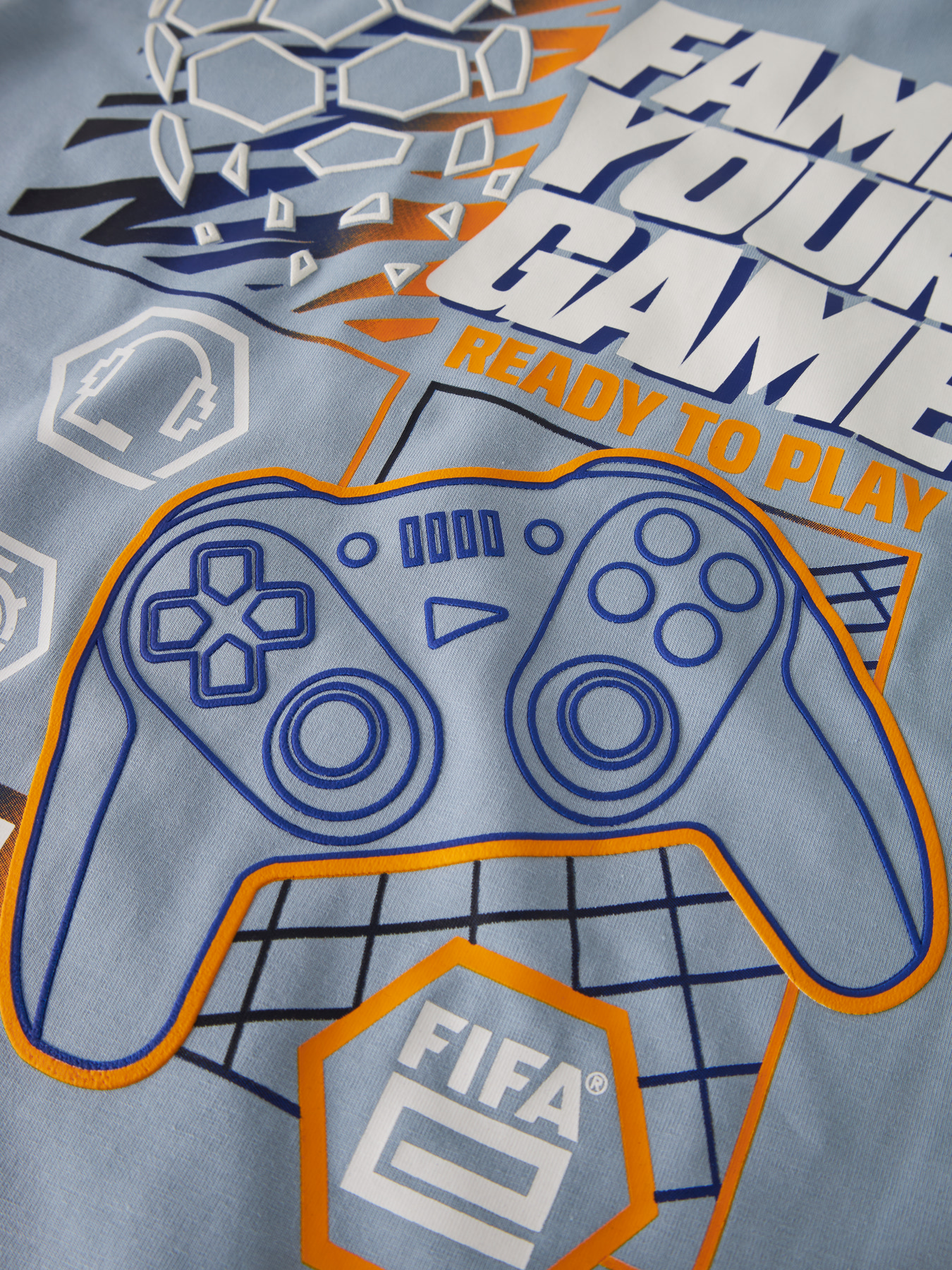 Opdater dit barns garderobe med en cool t-shirt fra Name It. T-shirten er lavet i heavy jersey, som giver et mere voluminøst materiale med flot fald og et rent udtryk. Designet har rund hals, korte ærmer og en regular fit pasform. Motivet er inspireret af FIFA og e-football-universet, der hylder fremtidens sports- og gamingkultur.
