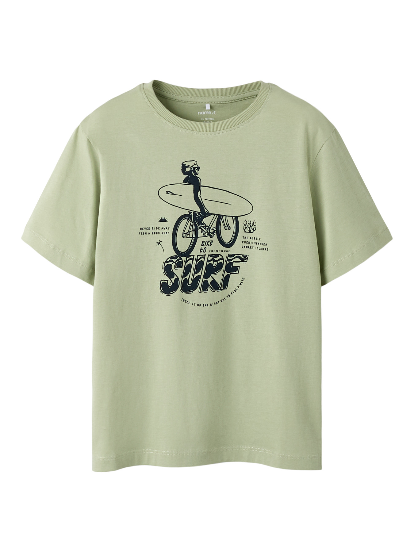En sej t-shirt fra Name it med et stort surfer print på maven. T-shirten er i regular fit og er i blød bomuld.